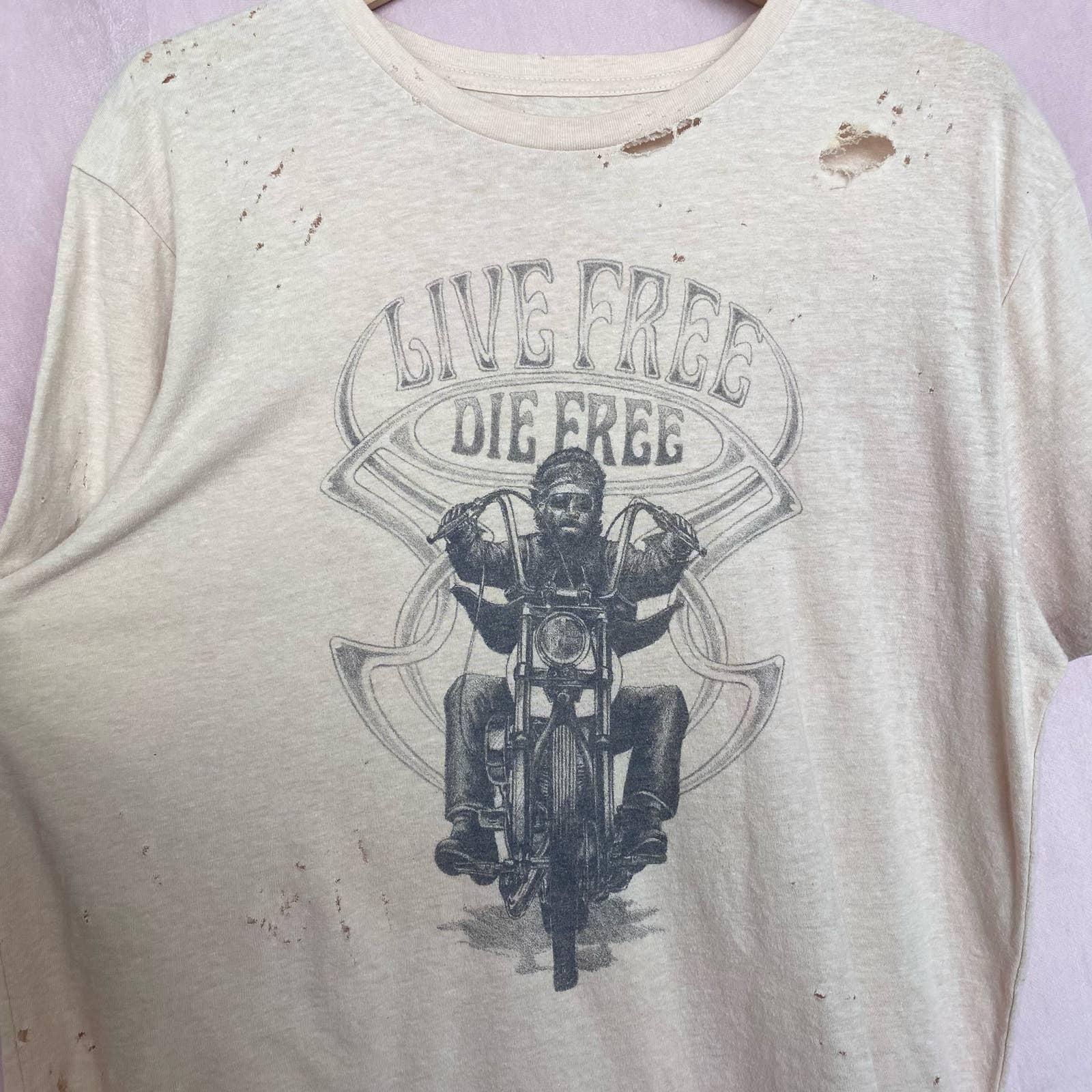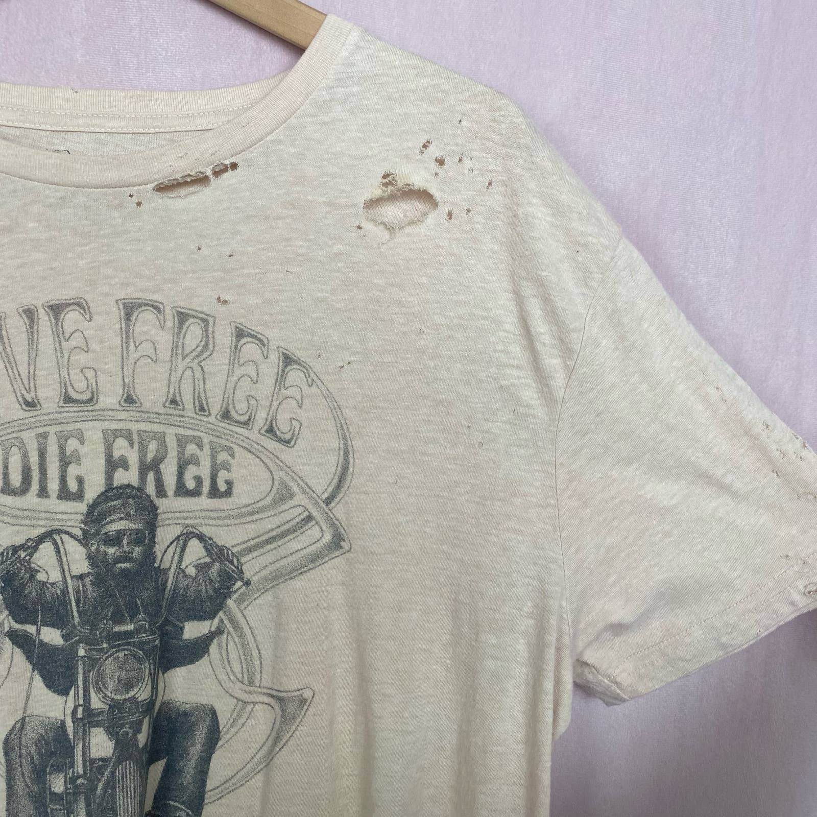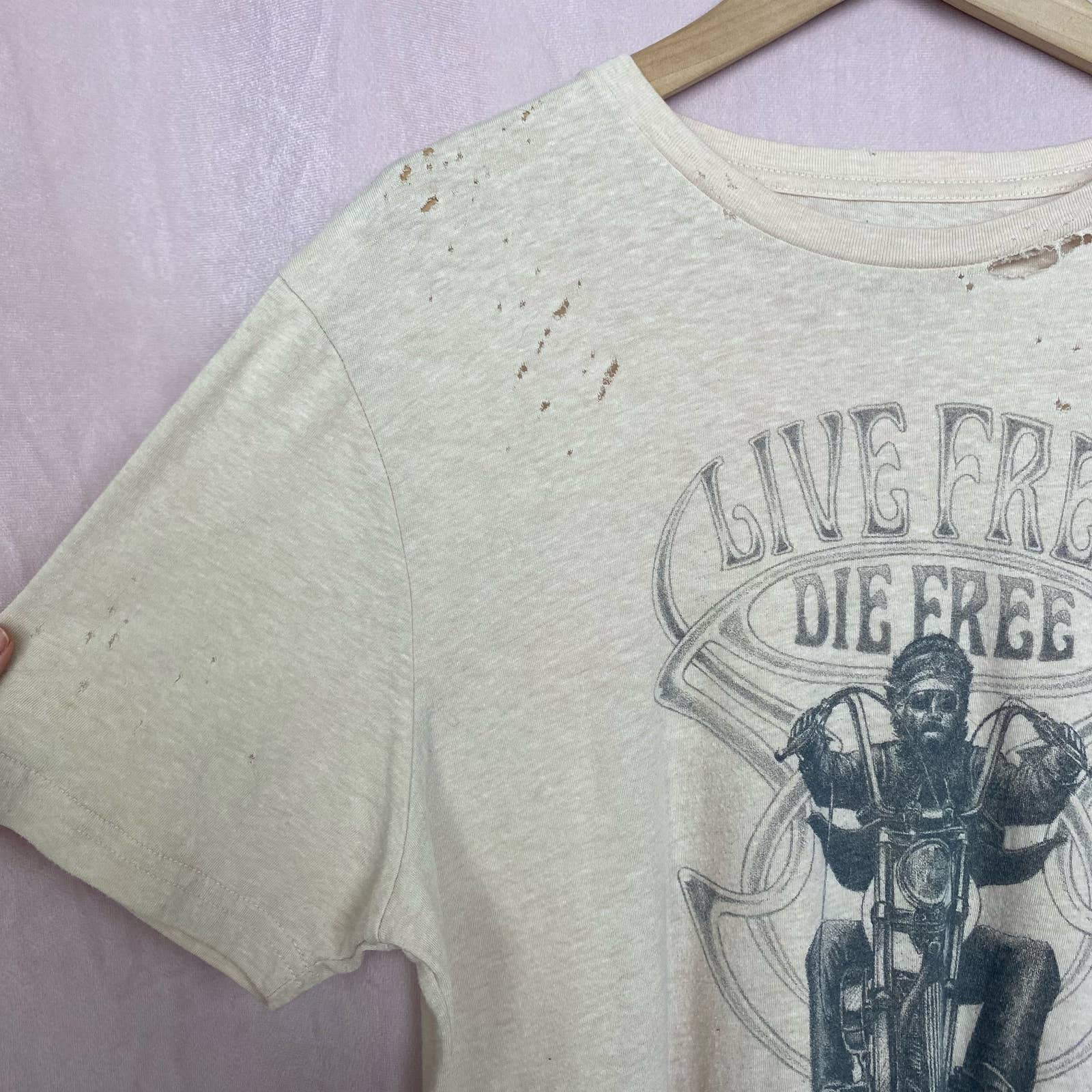 Upcycled Lucky Brand Live Free Die Free Distressed Tee, Size Large