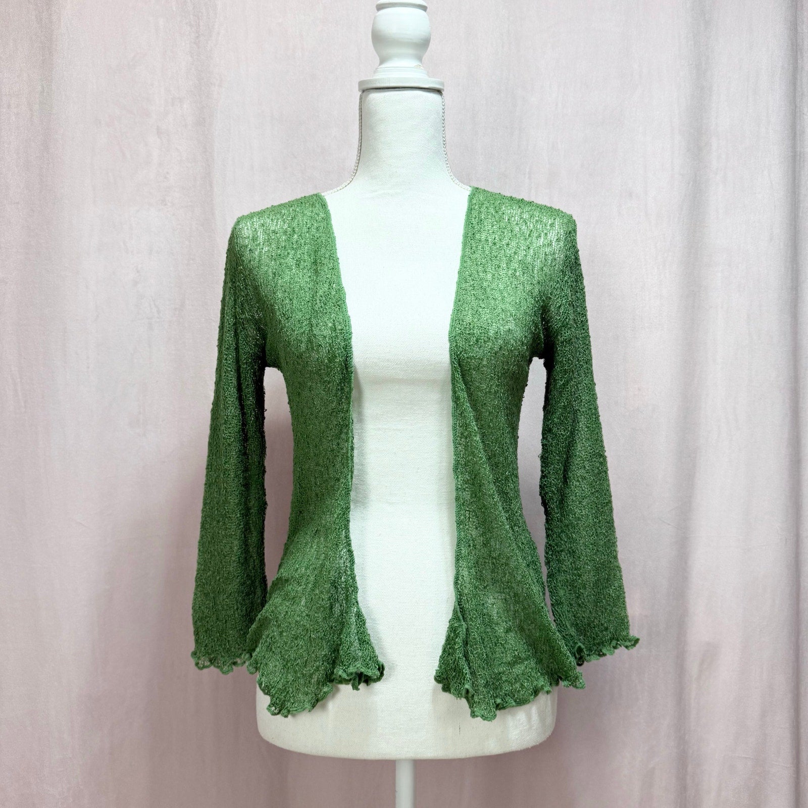 Preowned Shu-Shi Green Crochet Open Tie Front Cardigan, One Size