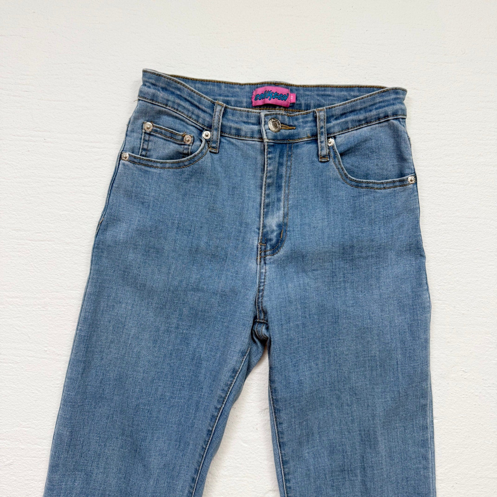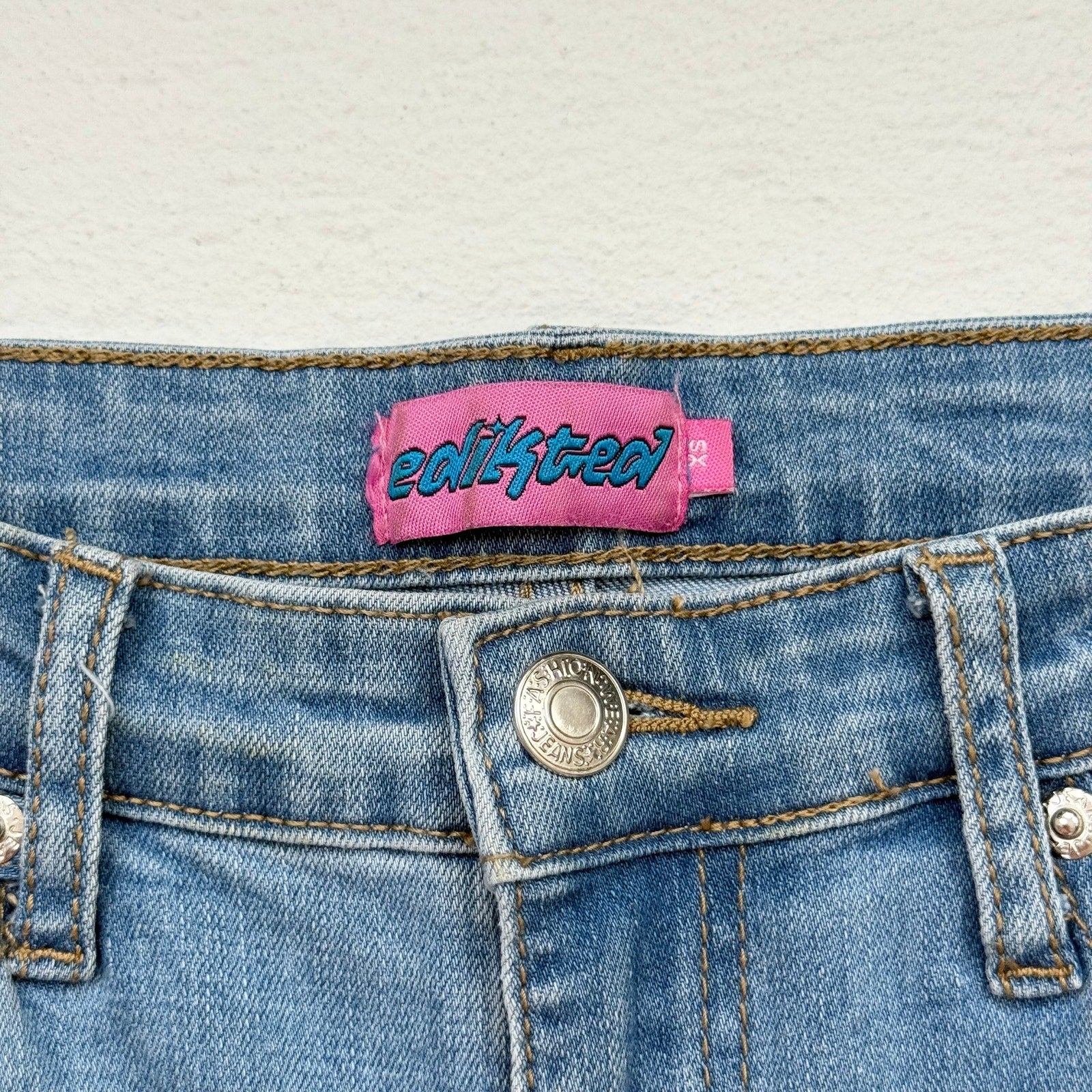 Reworked Edikted Feather Hem High Rise Flare Jeans, Size XS