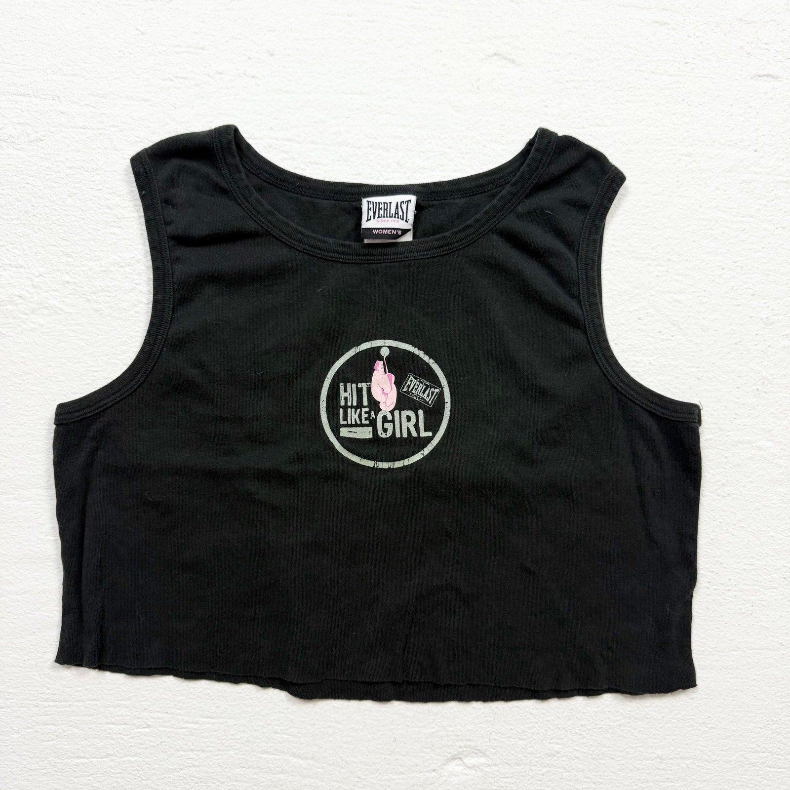 Reworked Everlast “Hit Like A Girl” Black Cutoff Crop Tank, Size XL