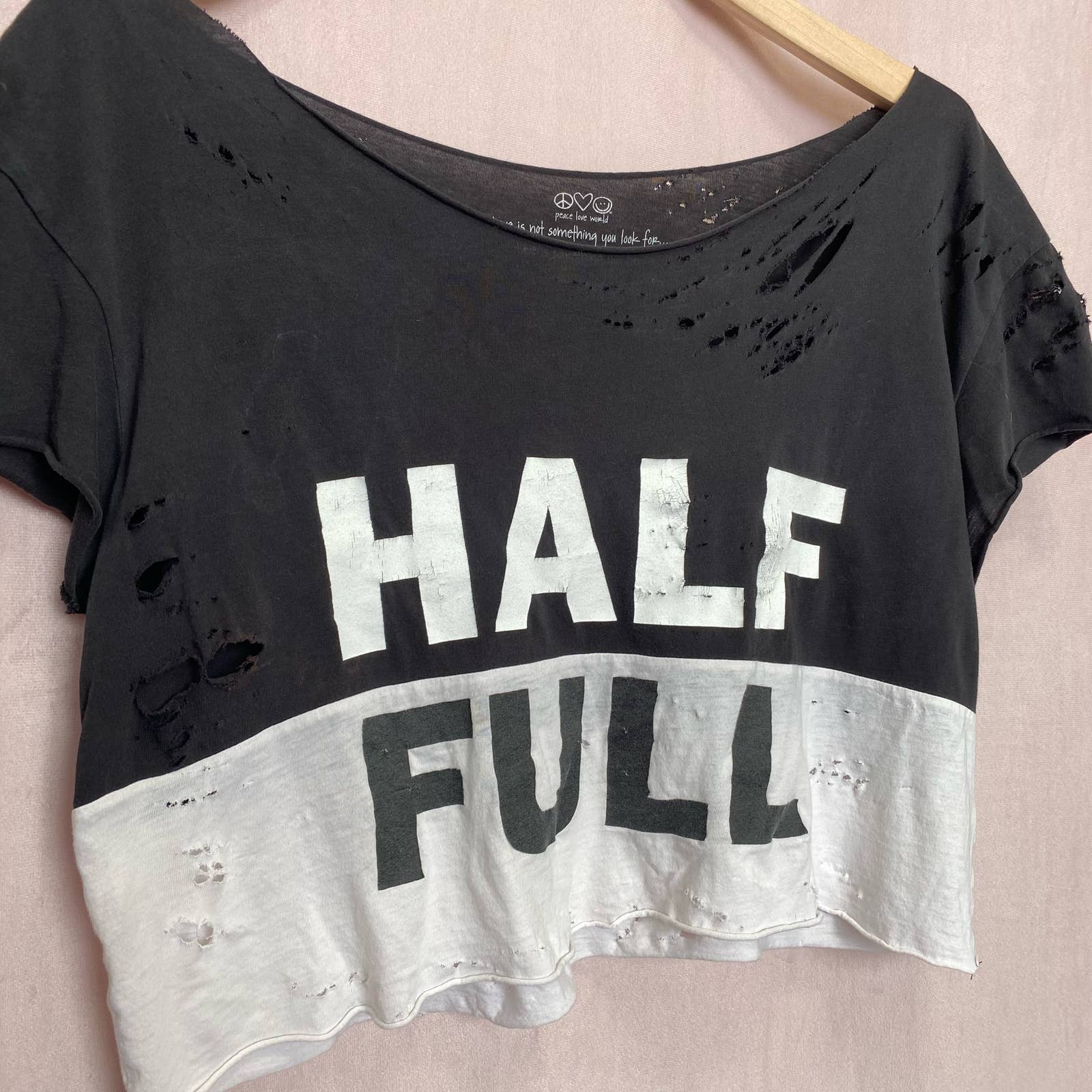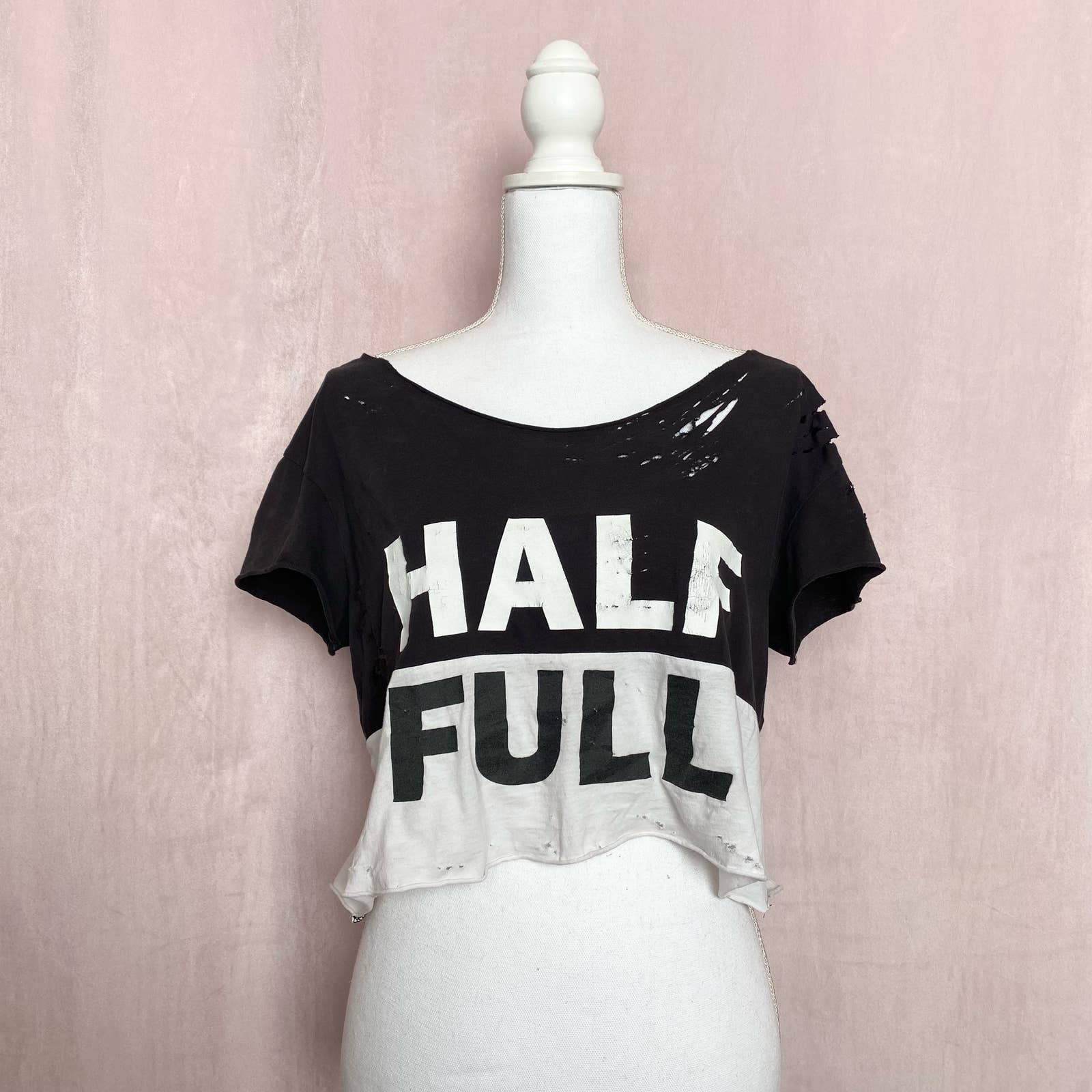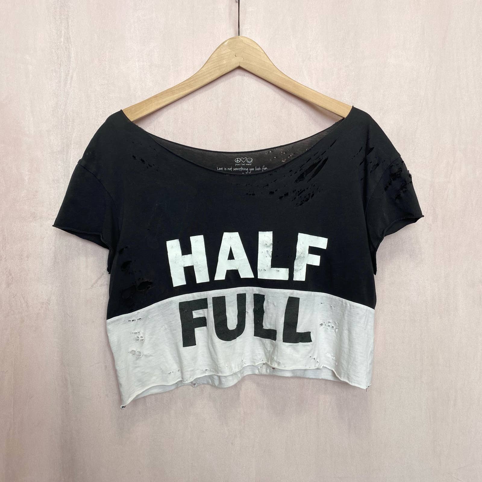 Reworked Half Full Distressed Crop Tee, Size Medium