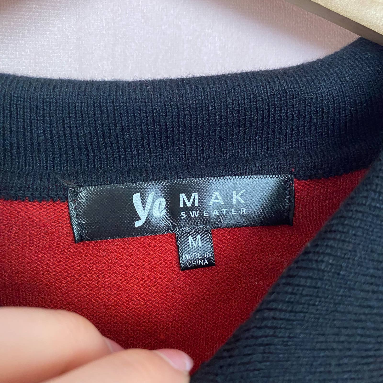Yemak meow cat classic contrast collar short sleeve casual pullover cropped knit red sweater. black collar. meow cat knit embroidery design. soft stretchy cotton acrylic blend fabric