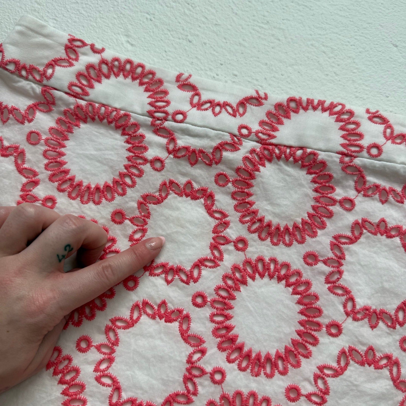 • embroidered coral eyelet design