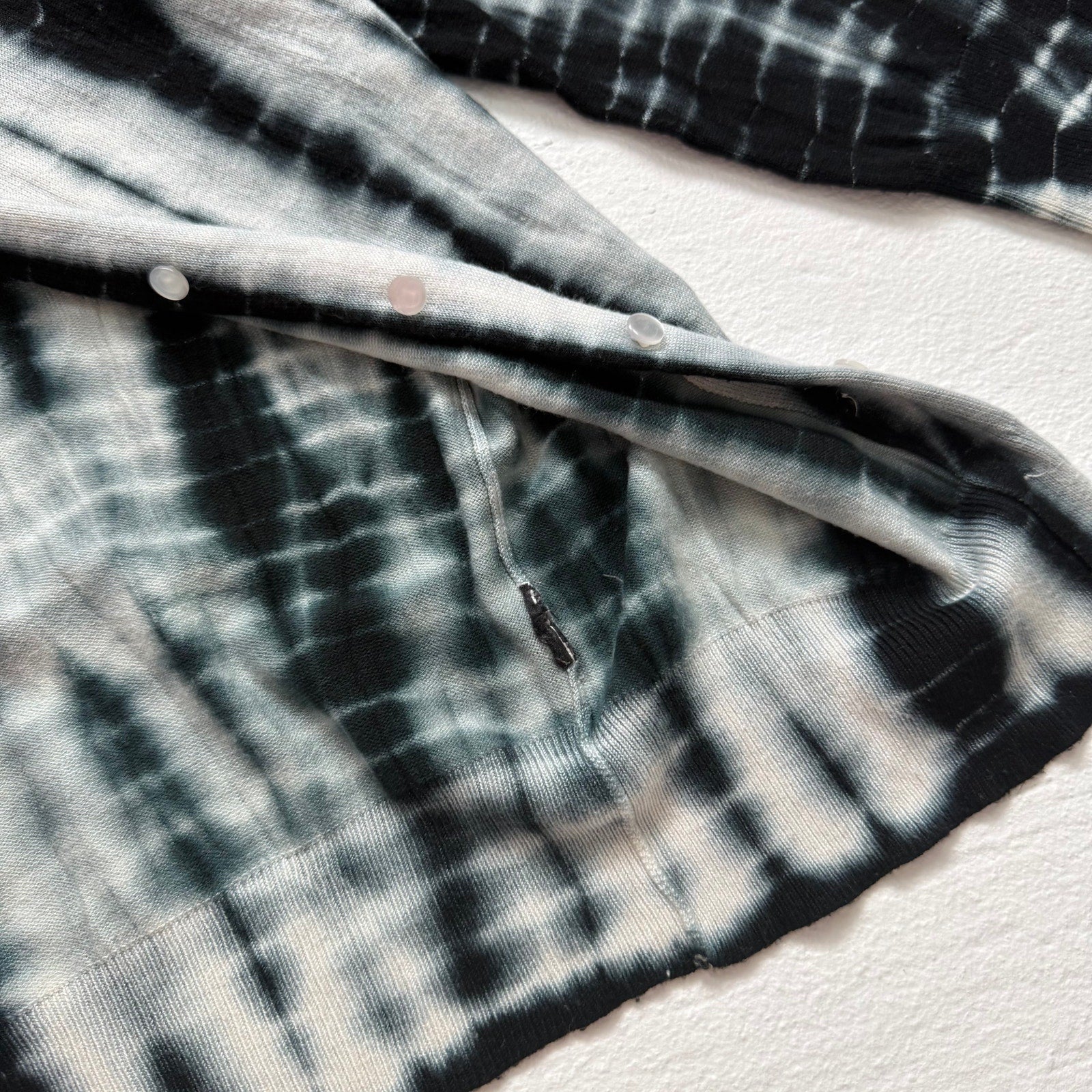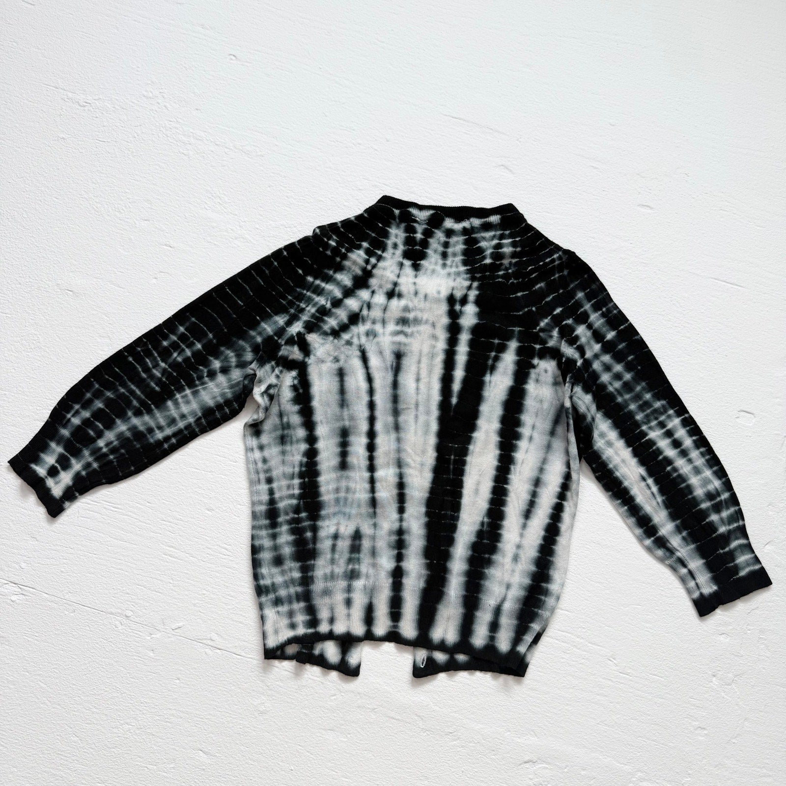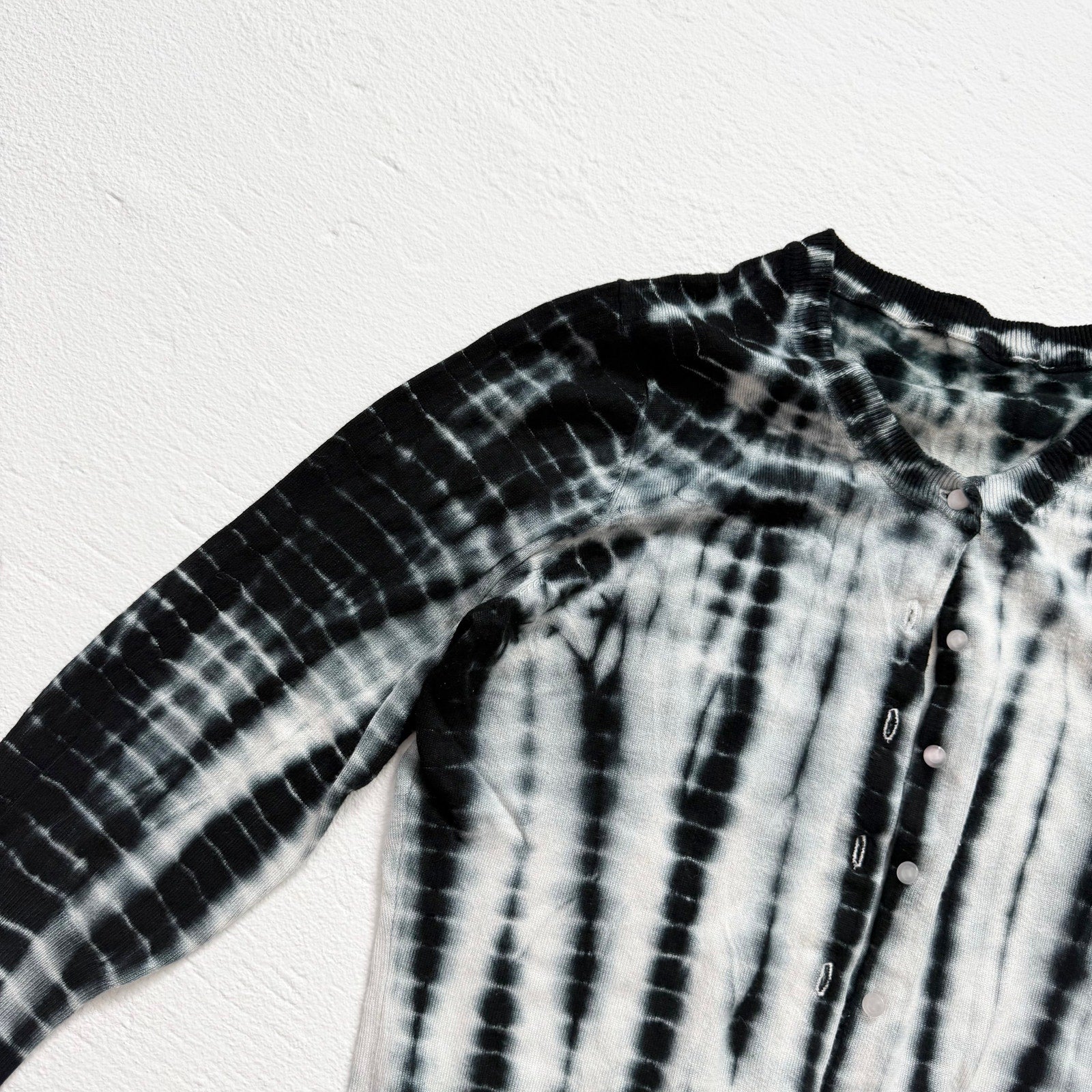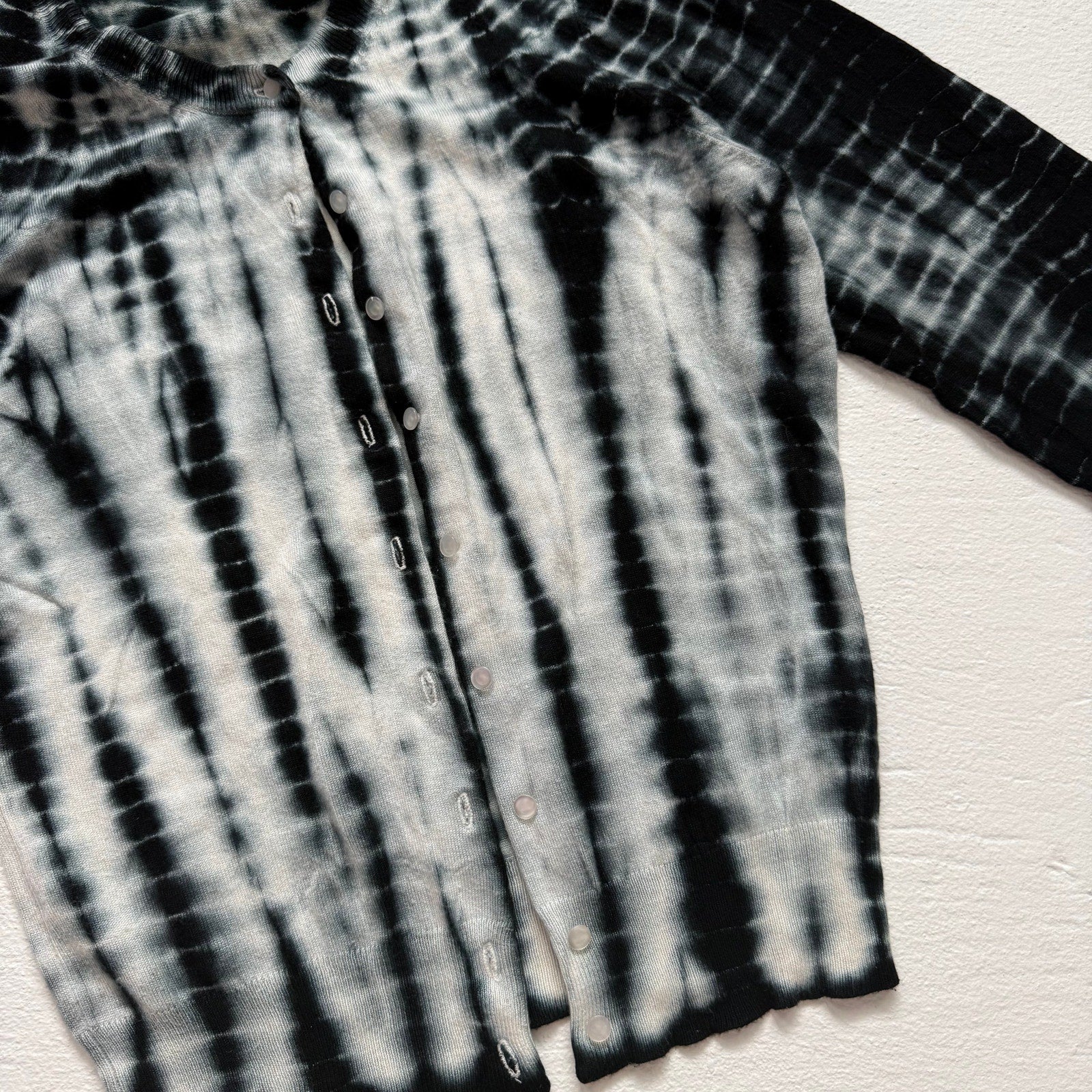 Secondhand Black White Tie Dye Ribbed Cropped Sleeve Cardigan, Size Large