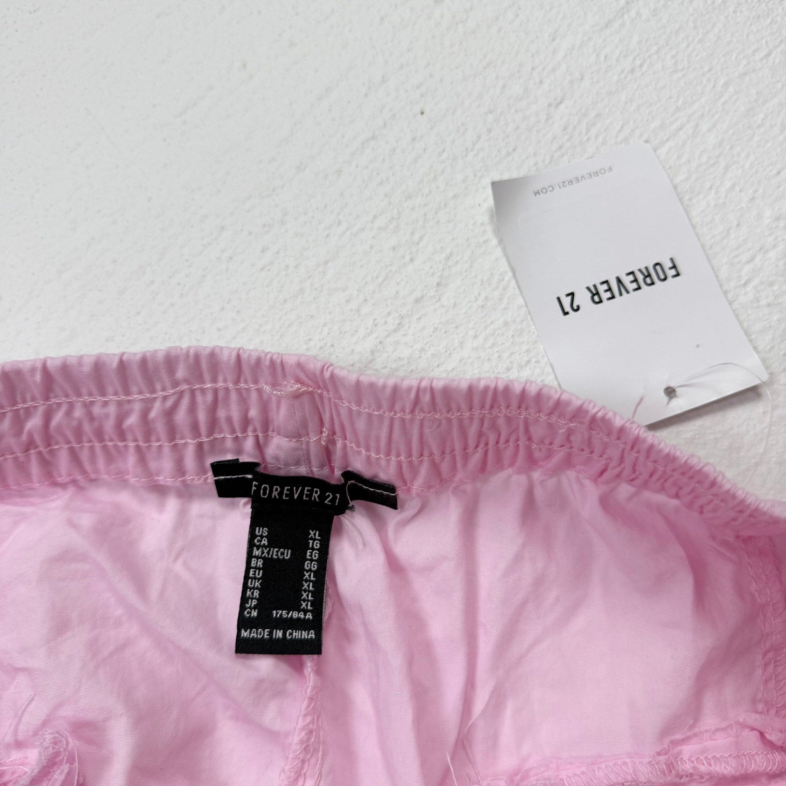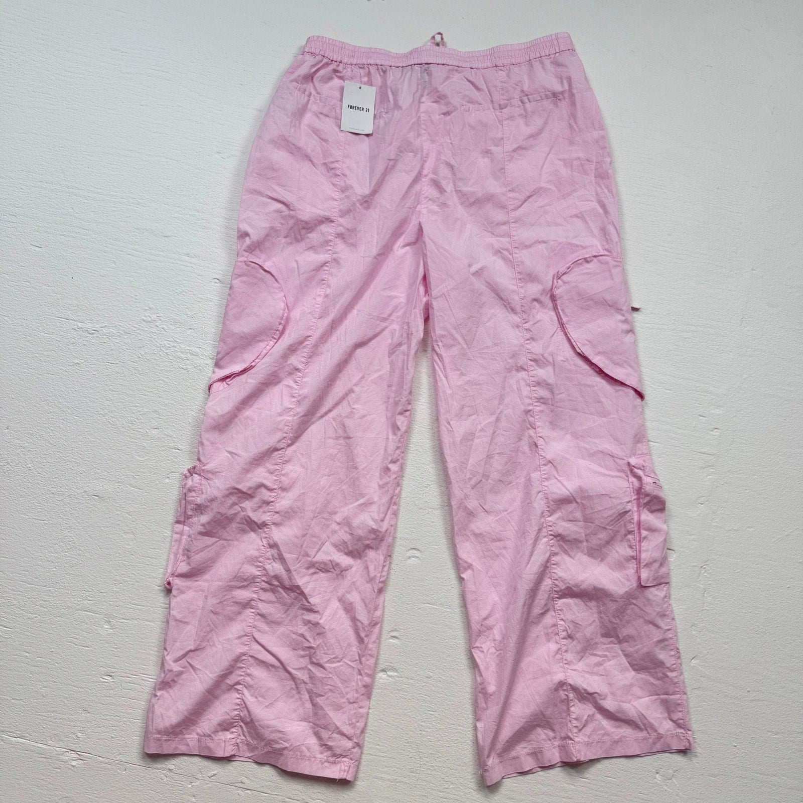 Secondhand Forever 21 Pink Cargo Wide Leg Pants Heart Pocket Bow Tie Detail, Size XL