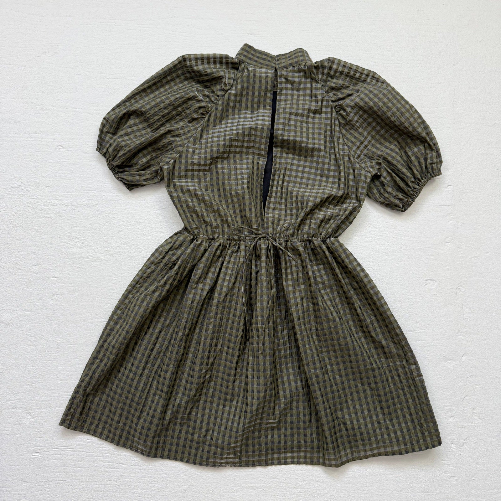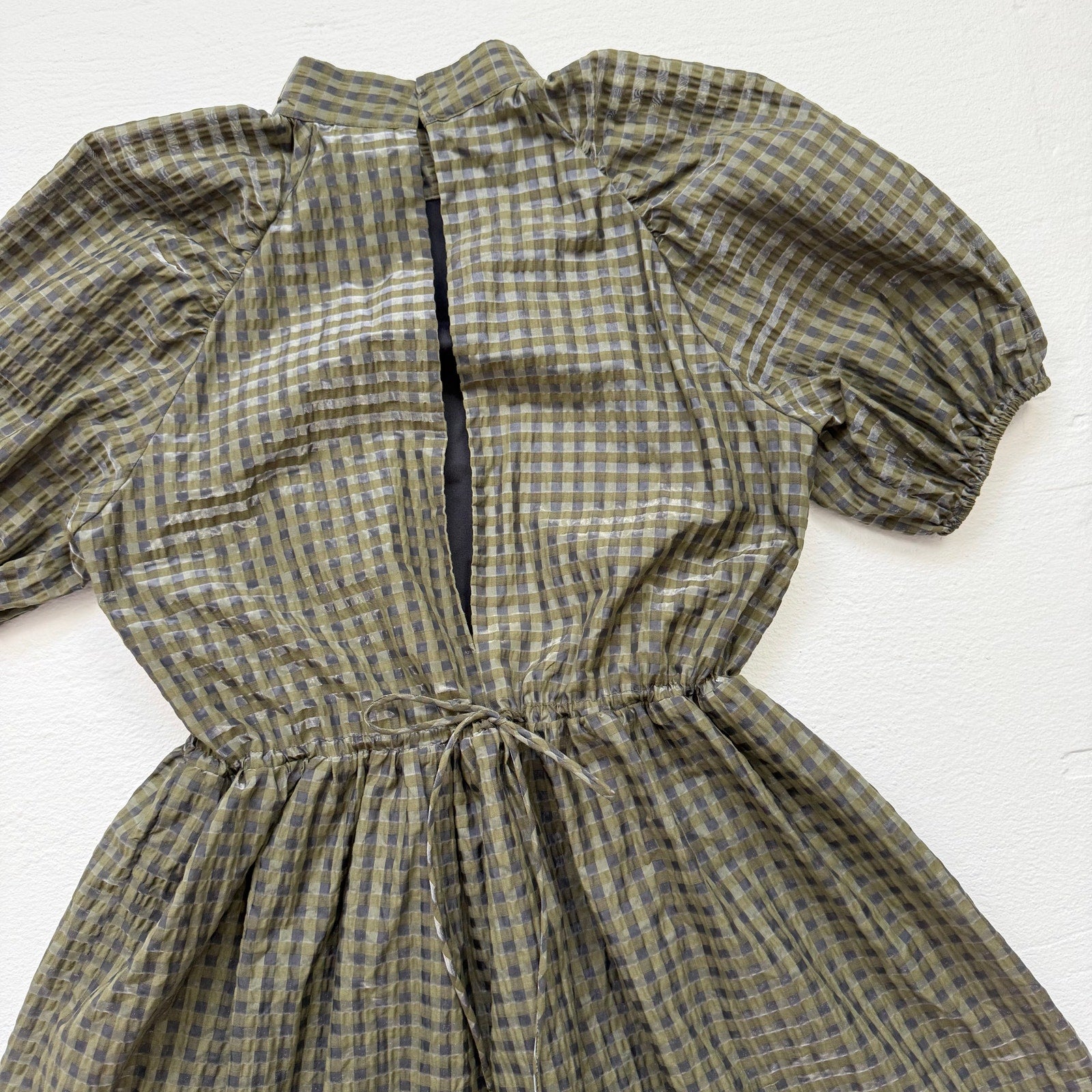 Secondhand H&M Green Plaid Puff Sleeve Babydoll Mini Dress XS