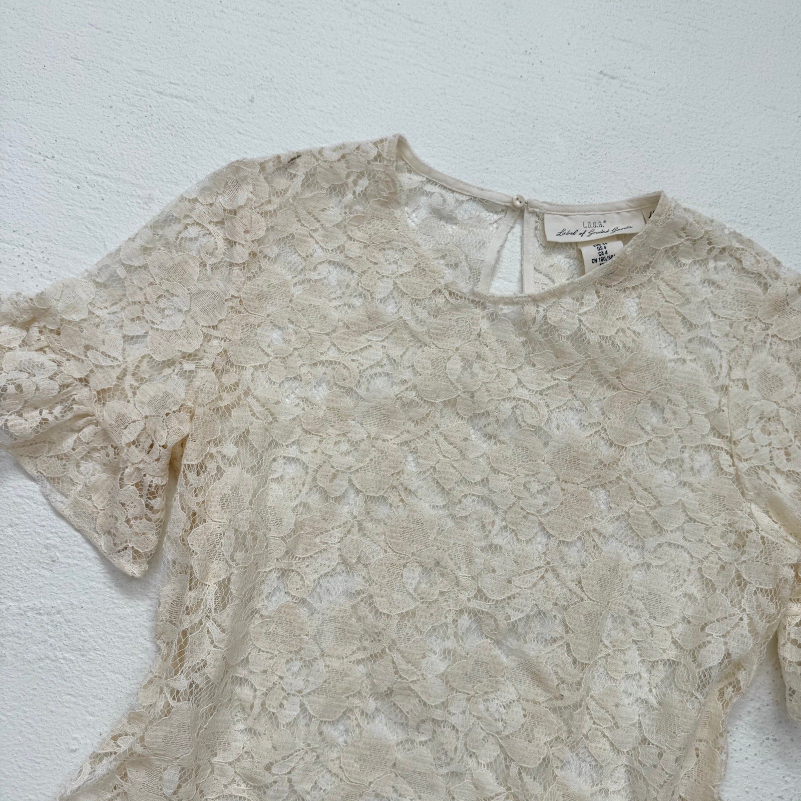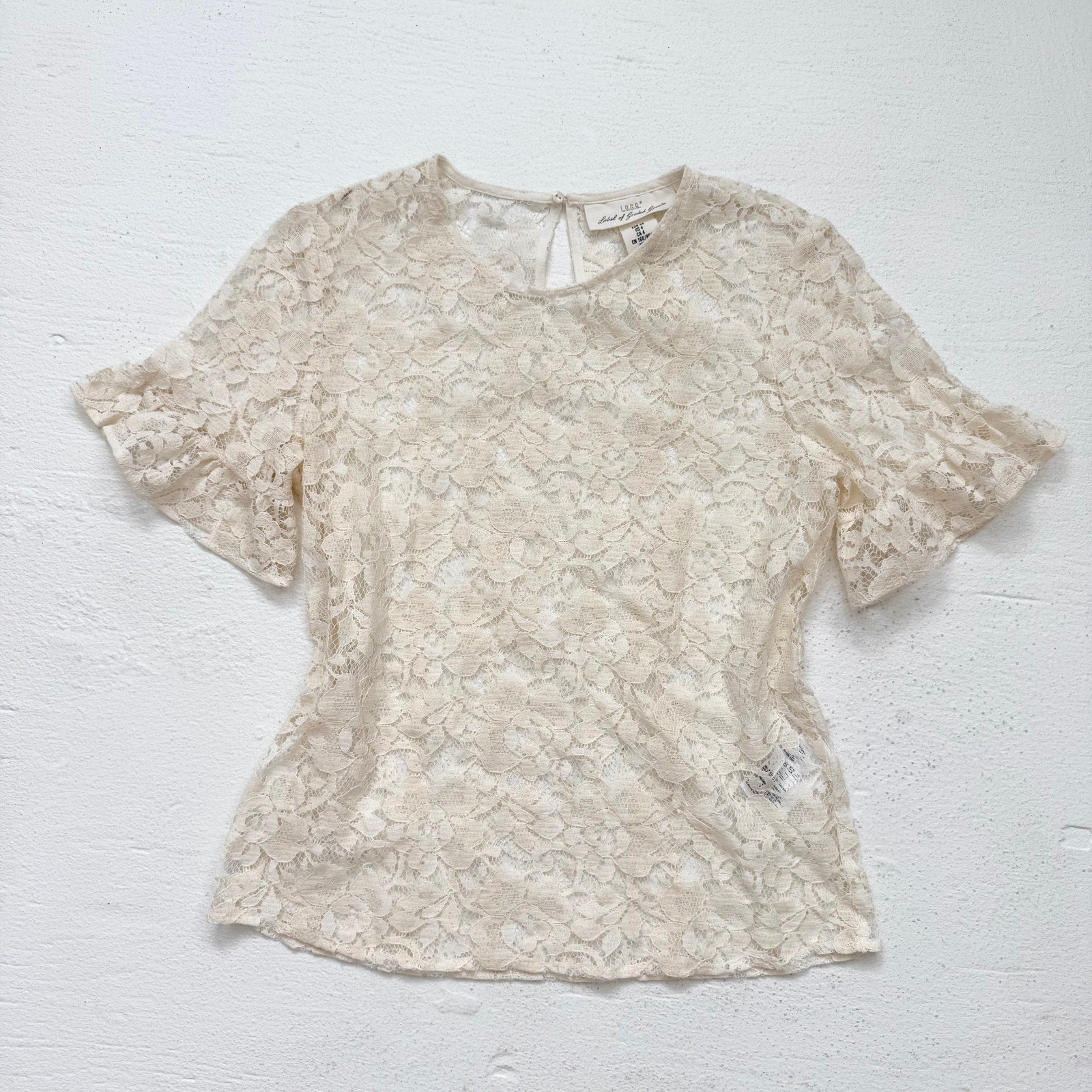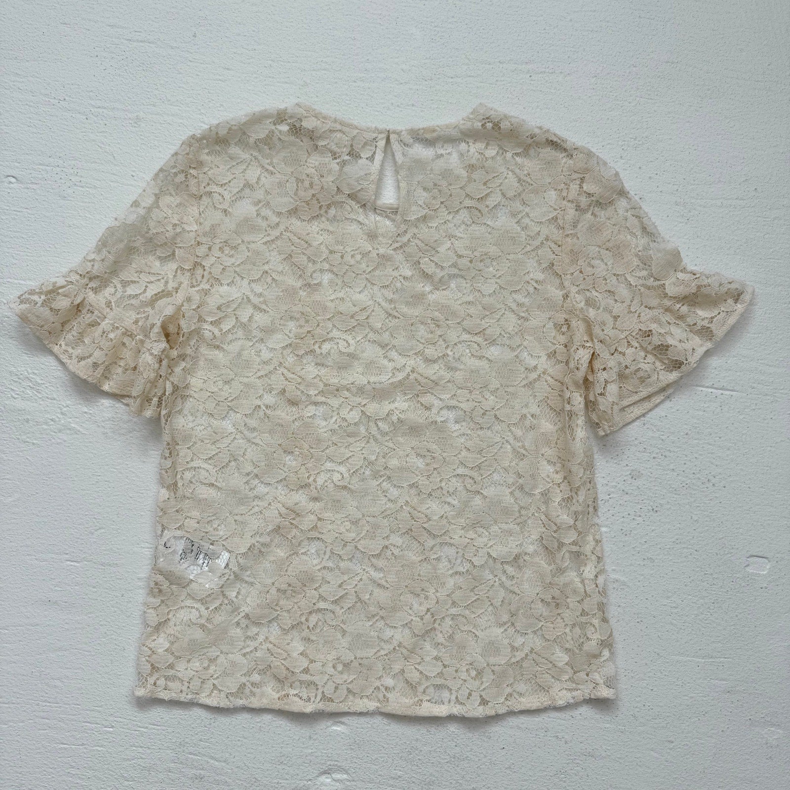 Secondhand LOGG H&M Flounce-Sleeved Cream Lace Blouse, Size 4