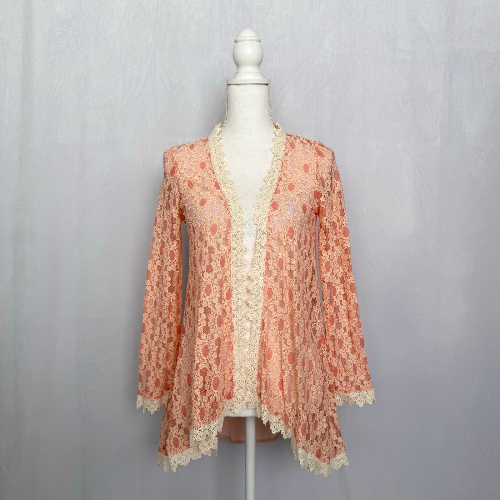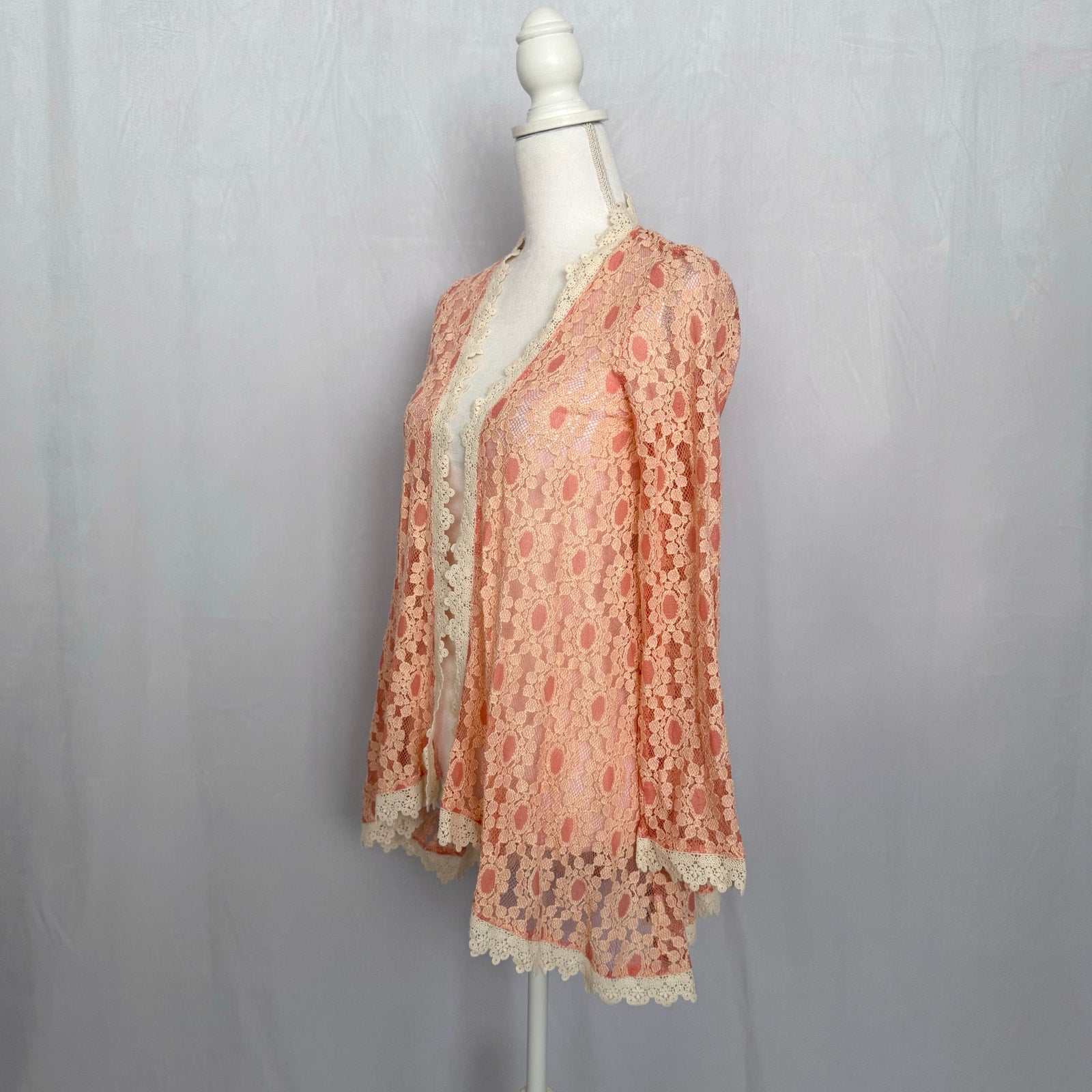 Secondhand Peach Love Floral Lace Open Front Cardigan, Size Small