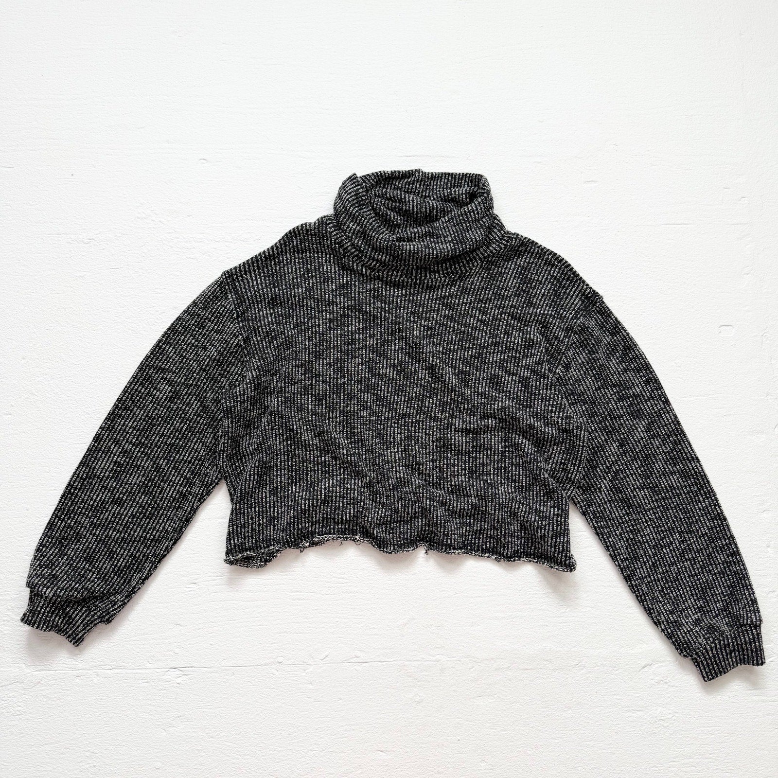 Secondhand Project Social T Knit Cropped Turtleneck Sweater Raw Hem Oversized, Size Medium