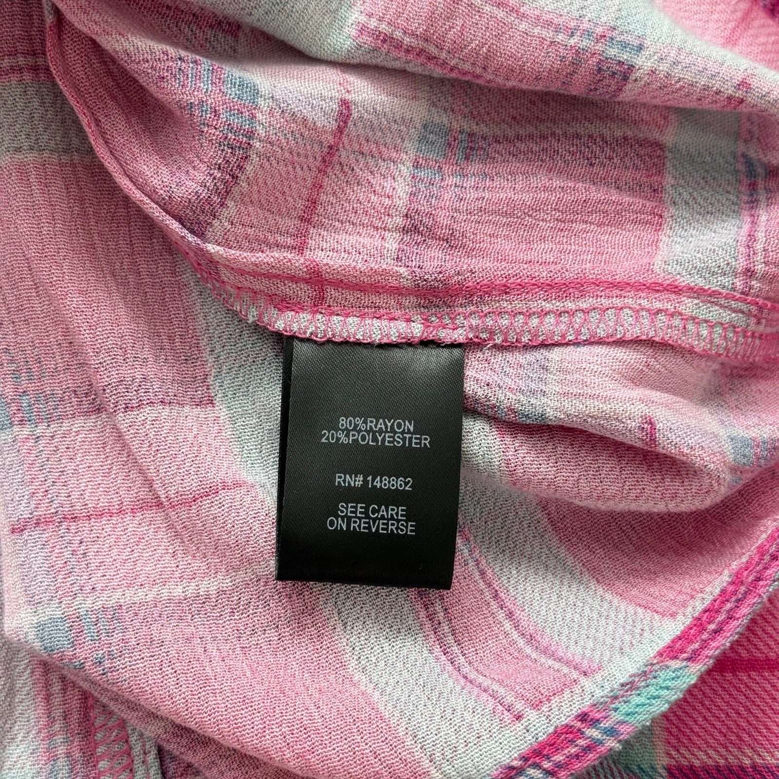 Secondhand Torrid Pink Teal Plaid Tie Front Peplum Top, Size 2X