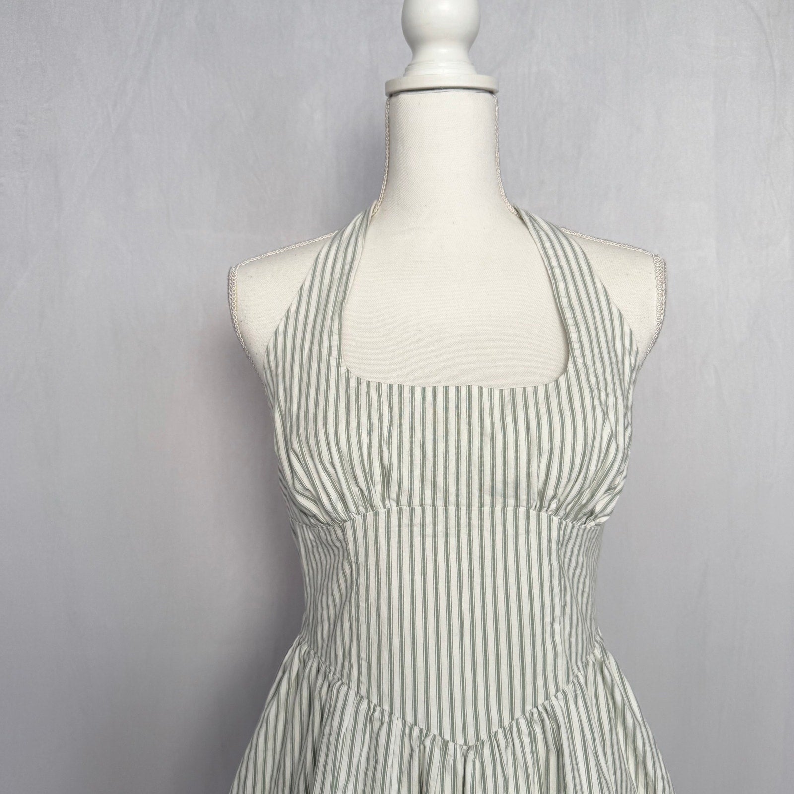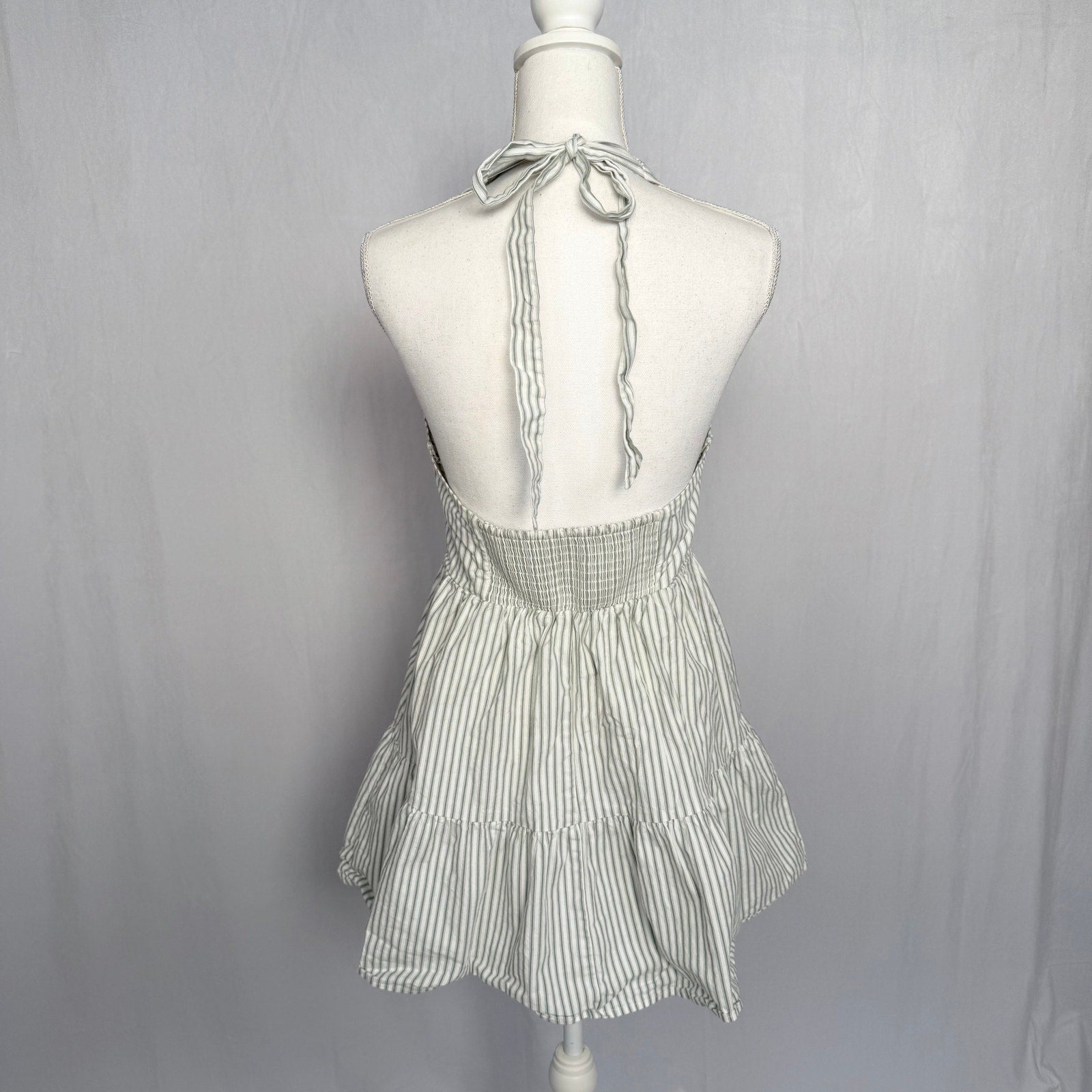 Secondhand Wild Fable Green White Stripe Halter Fit & Flare Mini Dress, Size Medium