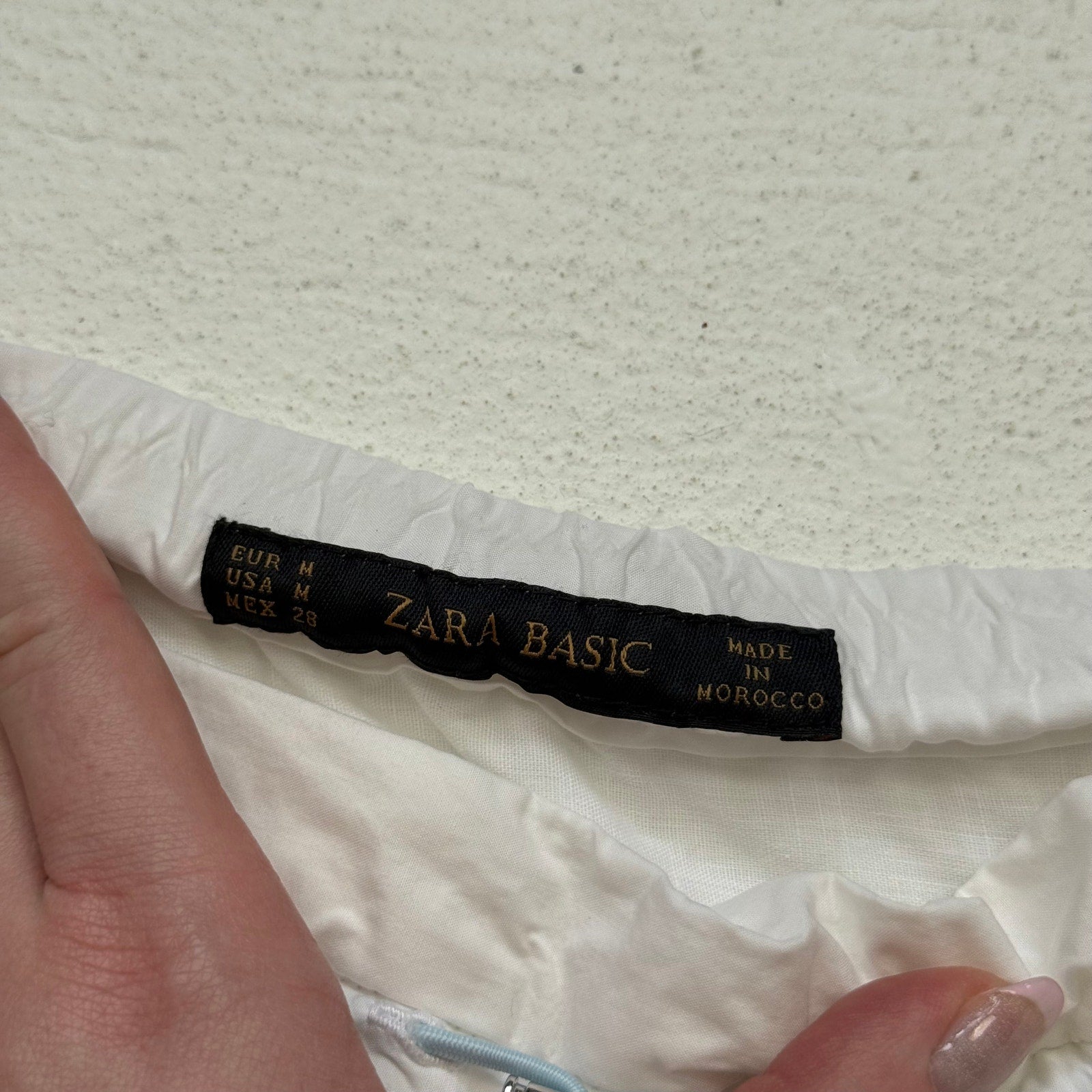 Zara Basic white tiered mini skirt with a lightweight feel and full lining. Features a comfortable waistband, above-knee length, and flared silhouette for easy movement. Perfect for summer outfits, layering, or casual wear.