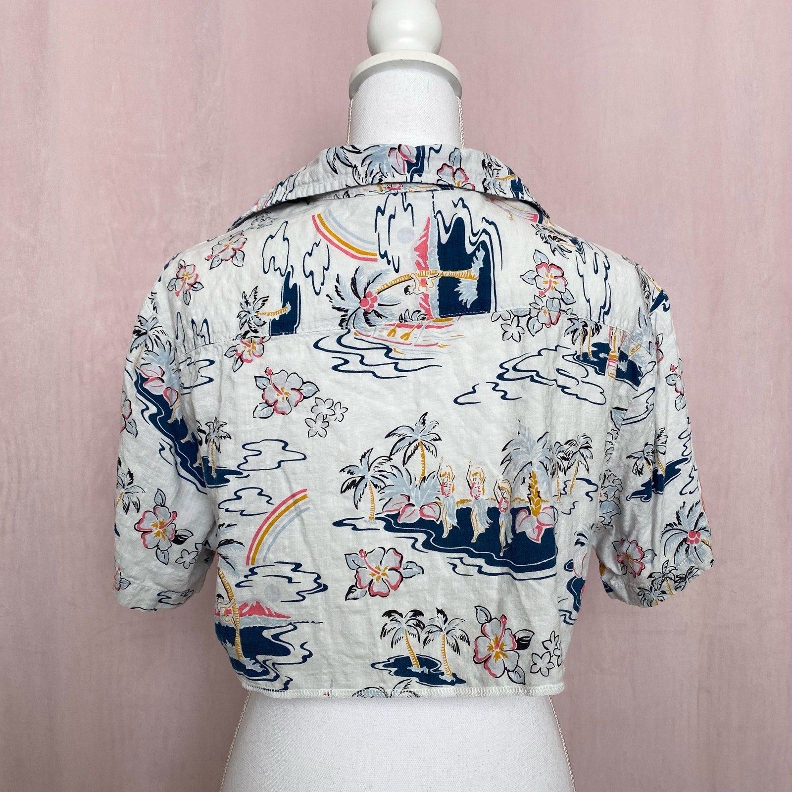 Upcycled Crop Hawaiian Shirt & Scrunchie Set, Size Medium