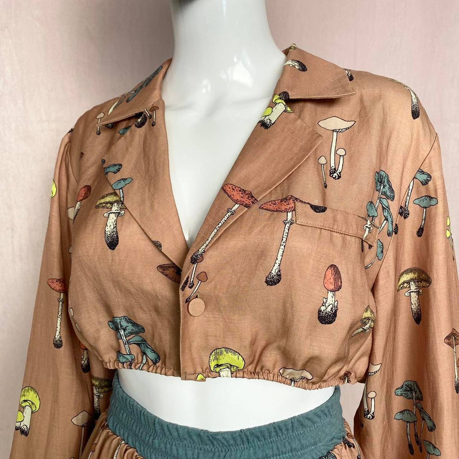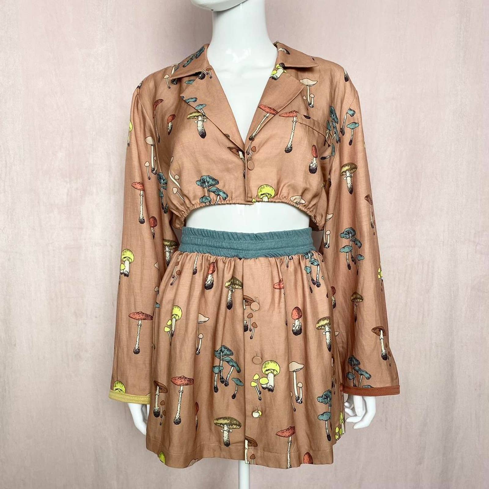 Upcycled Mushroom Crop Jacket & Skirt Set, Size S/M