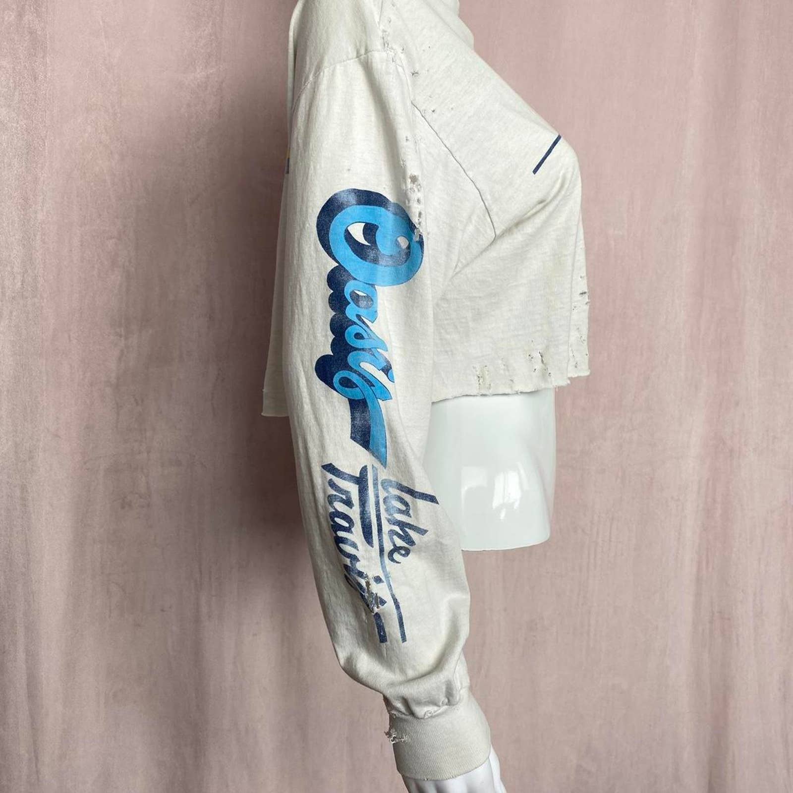 Upcycled Oasis Lake Travis Distressed Crop Long Sleeve, Size Large