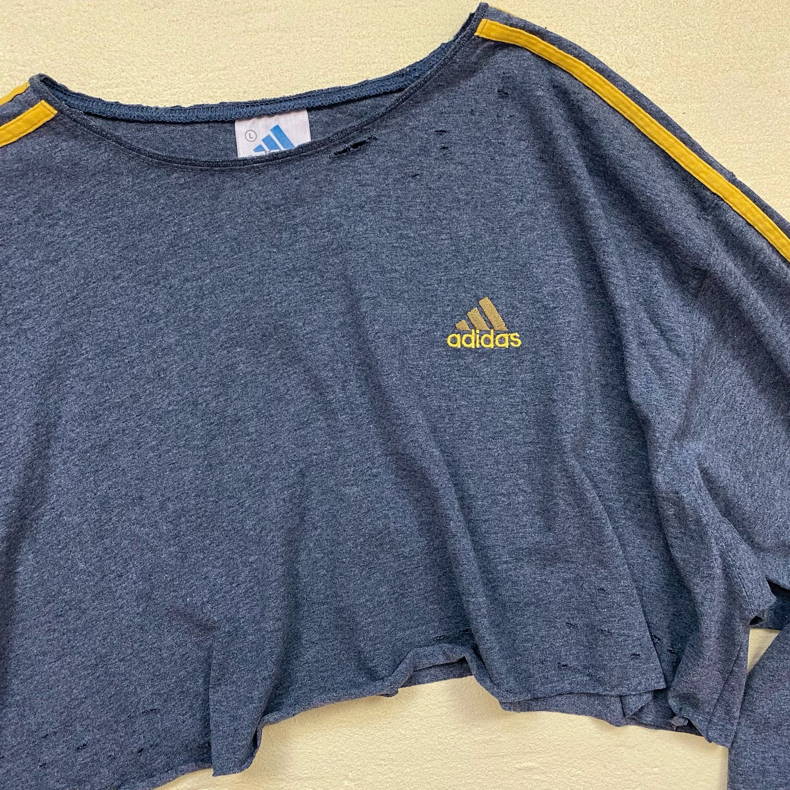Upcycled Vintage Adidas Distressed Crop Long Sleeve, Size Large