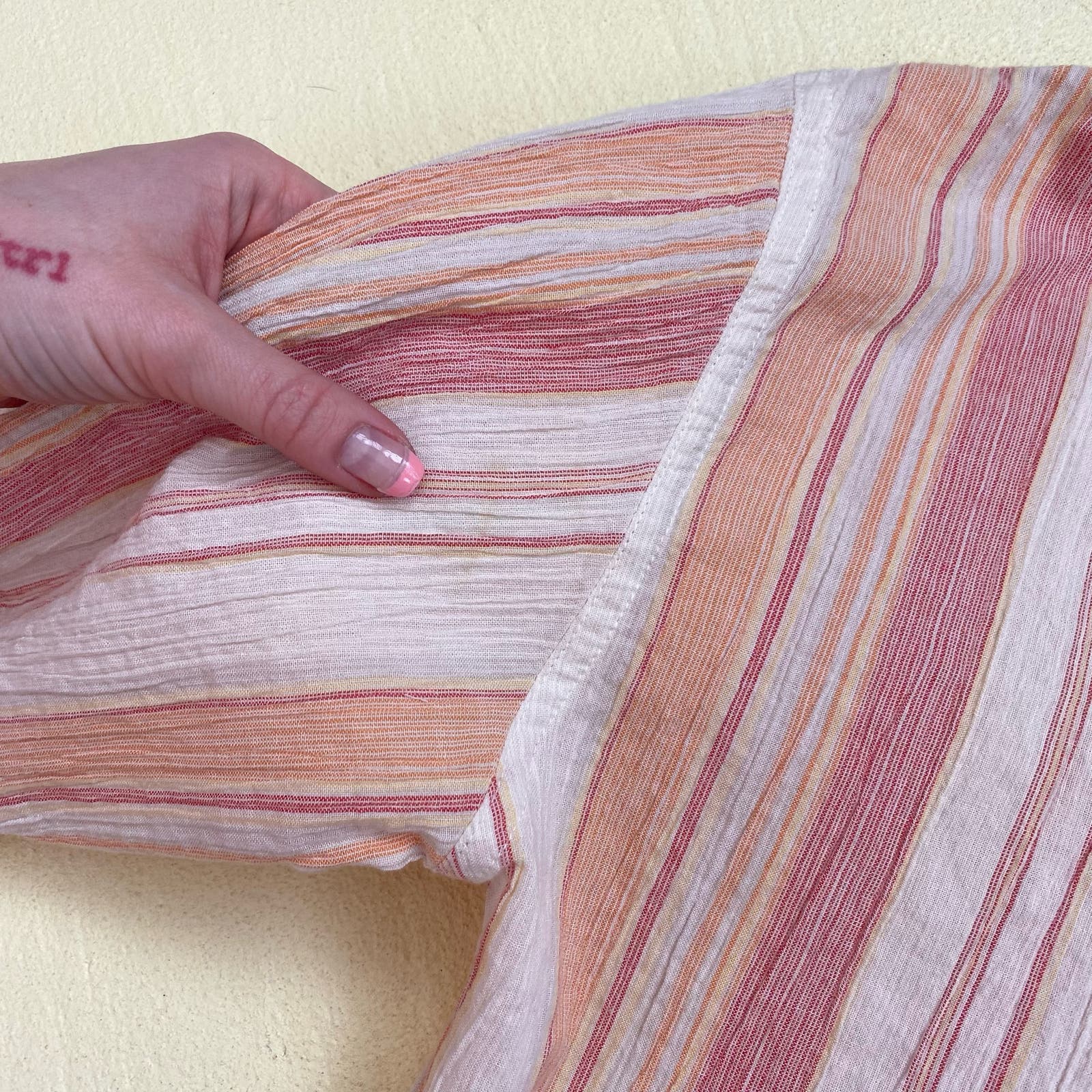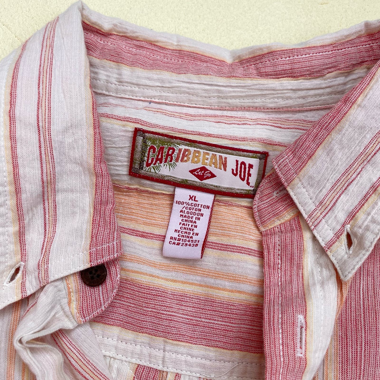 upcycled vintage Caribbean Joe striped button front two piece set. textured lightweight fabric. outside seam detail. original piece marked men's XL but set fits women's size small-medium best - please see measurements!