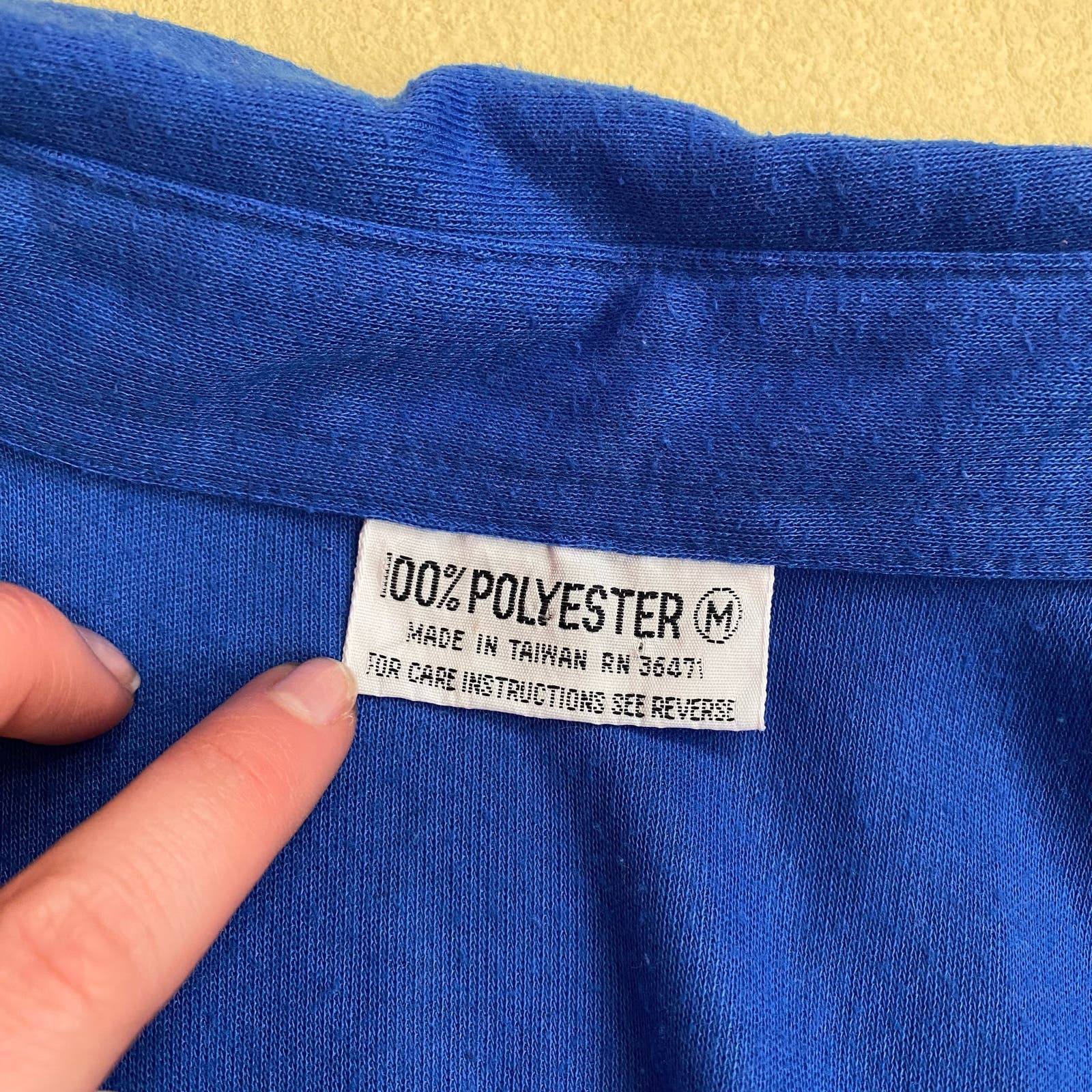 reworked vintage floral embroidered cropped button front short sleeve polo collared top with outer seam detail. fitted. white trim. pleated front detail. lightweight soft stretchy worn pilled fabric. marked size medium but fits best size xs-small