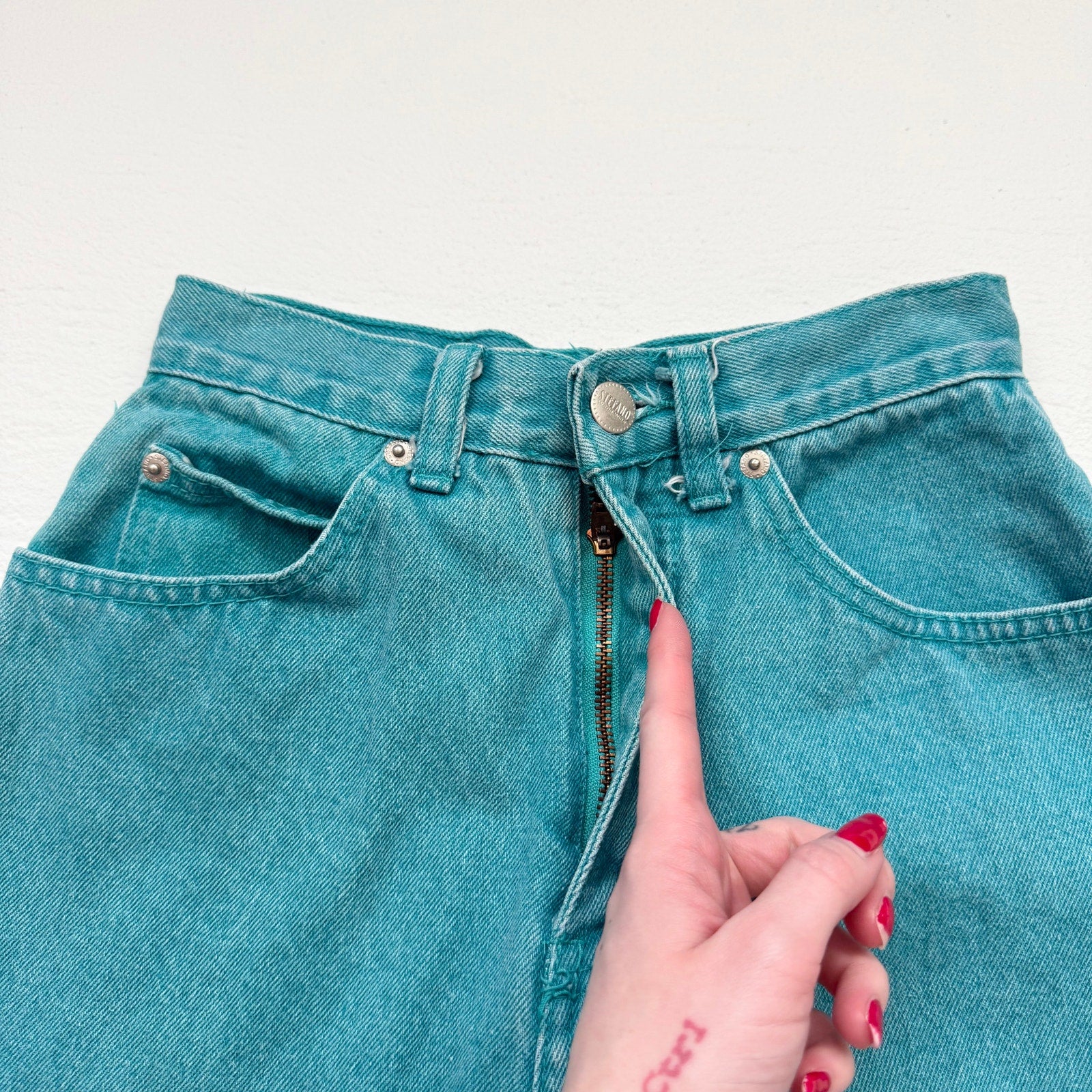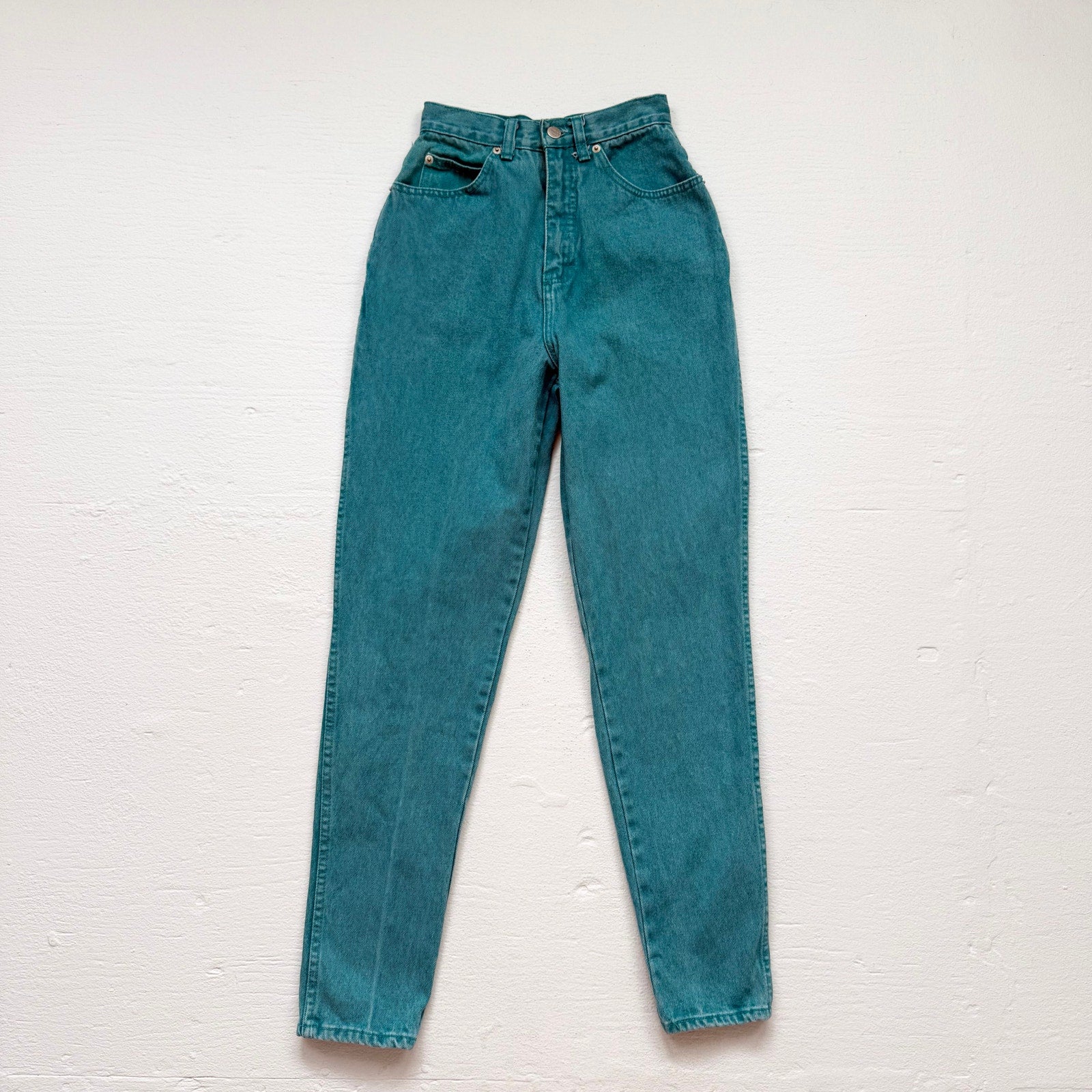 Vintage 90s Stefano Teal High-Rise Tapered Jeans, Size 23"