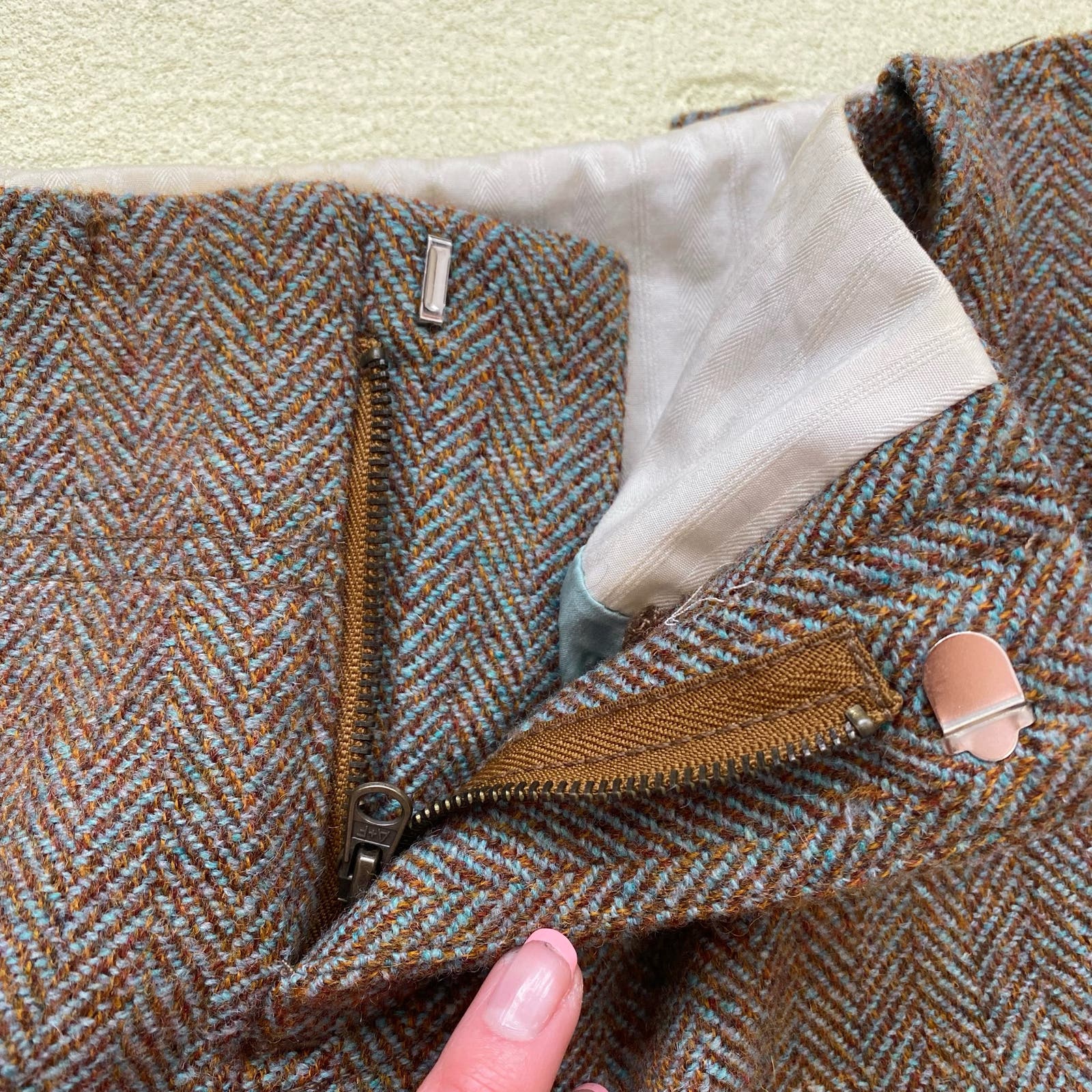 • material: wool nylon body. cotton waist facing. silk lining & trim