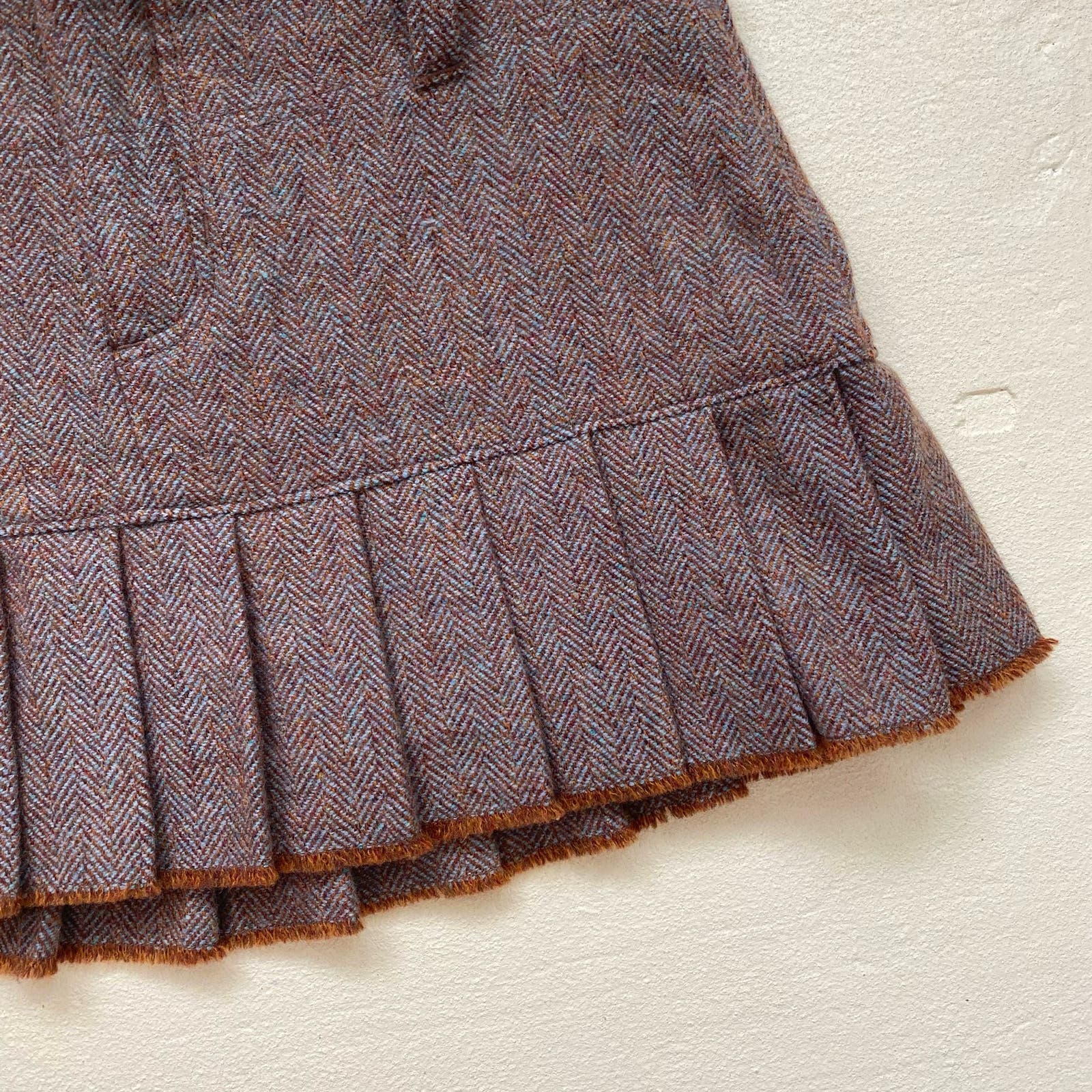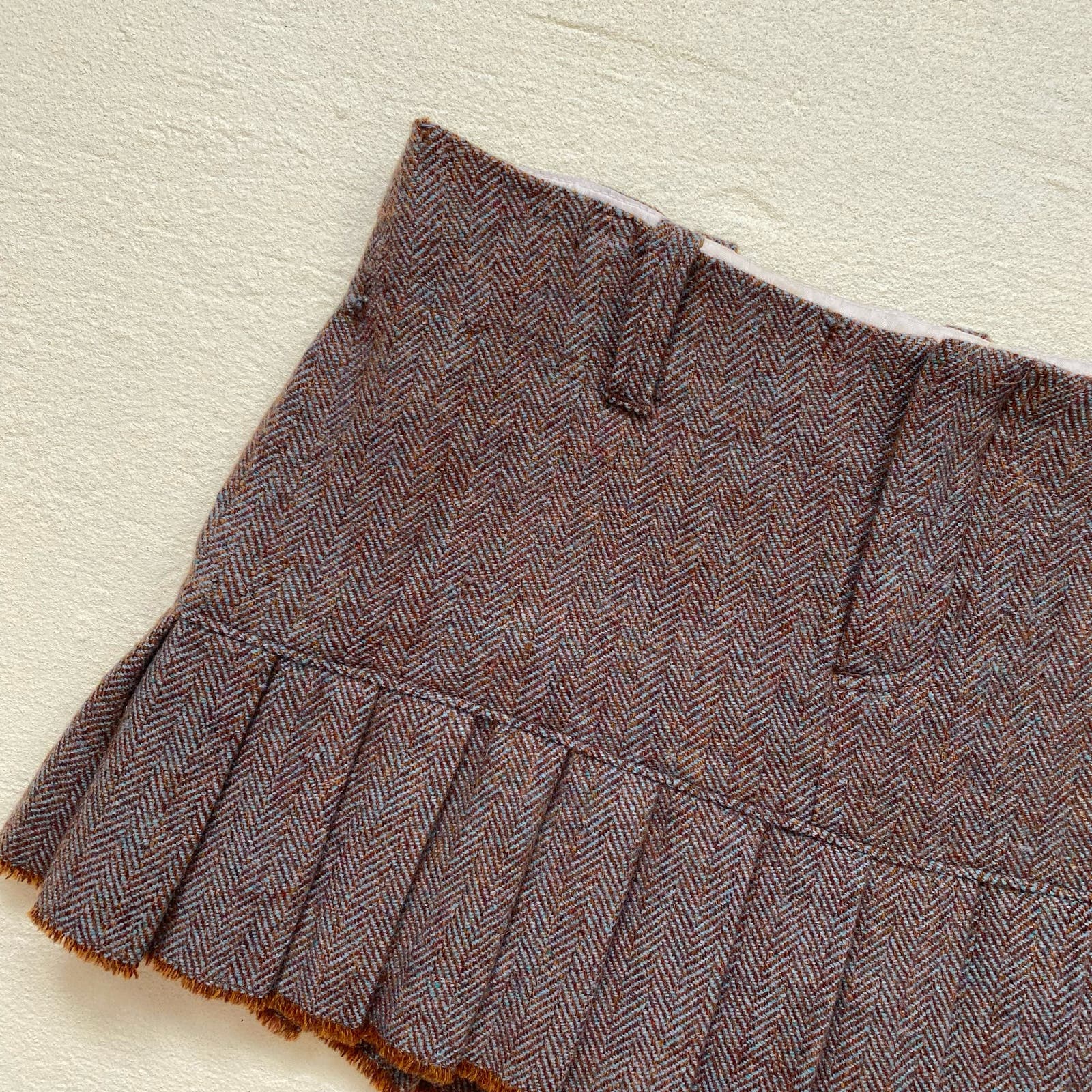 vintage Y2K wool blend pleated mini skirt with silk lining. zip hook eye fly front closure. belt loops