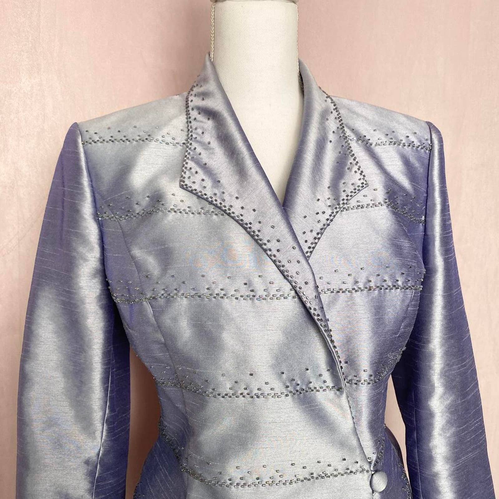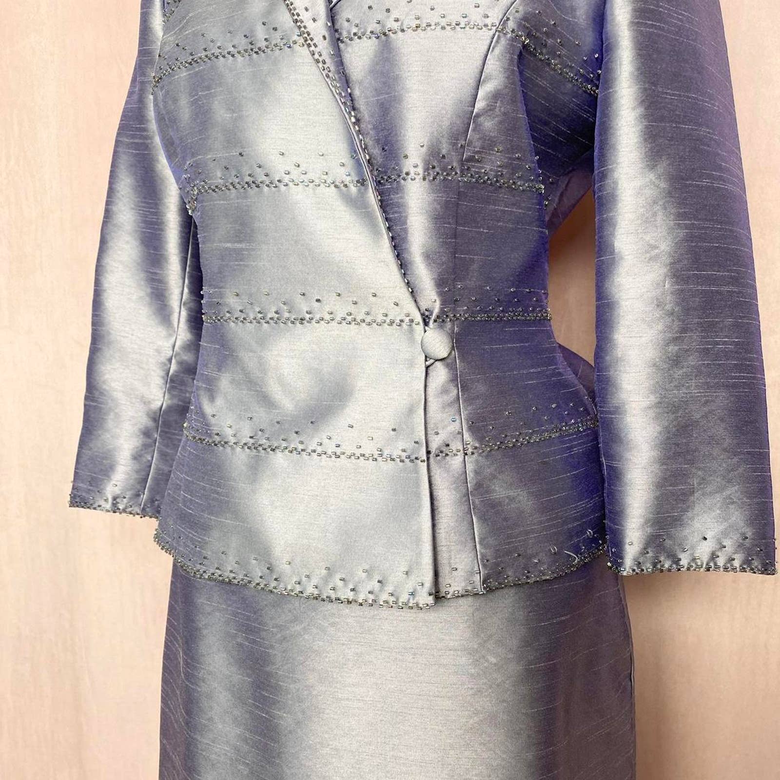 formal light purple sparkly beaded blazer jacket & pencil skirt two piece set.