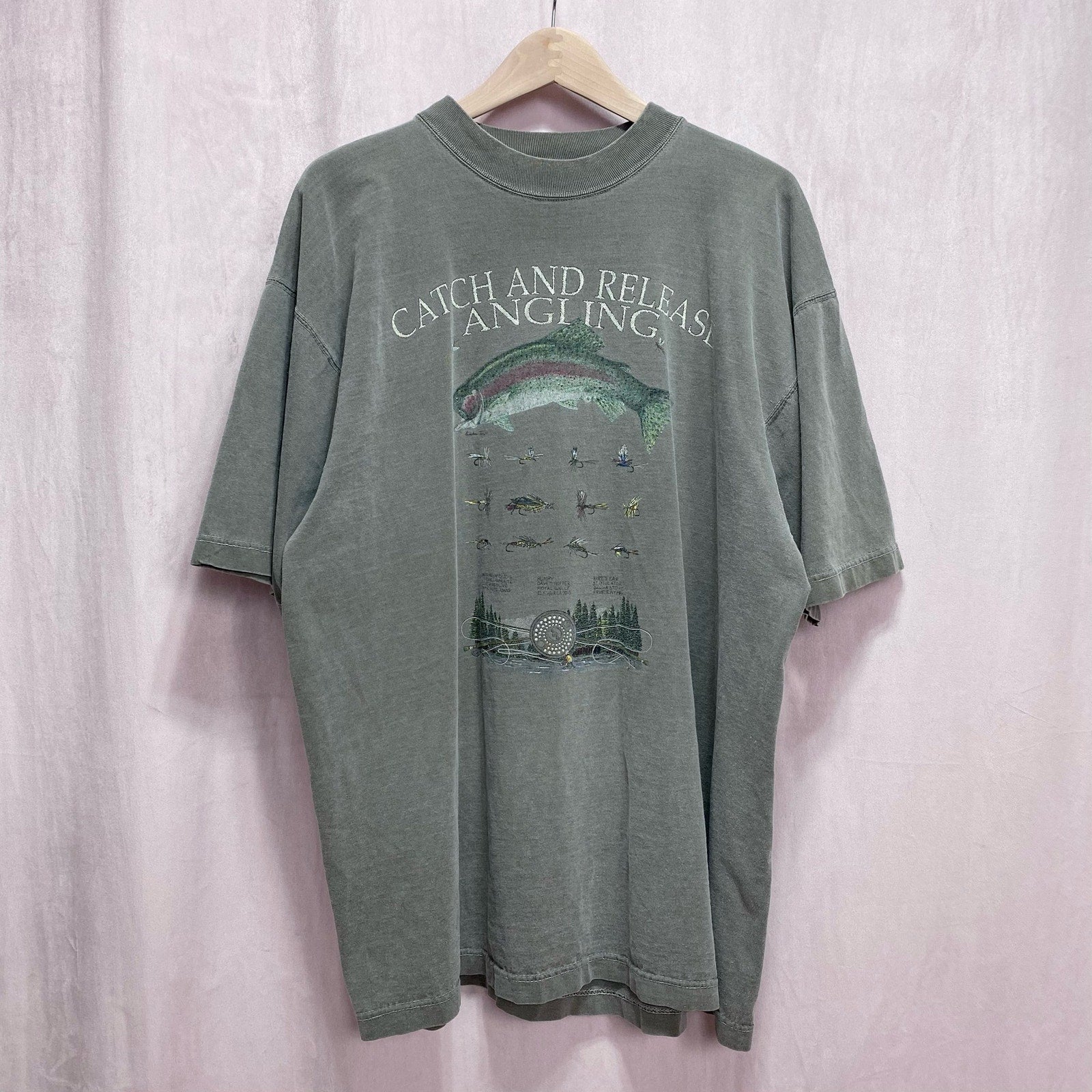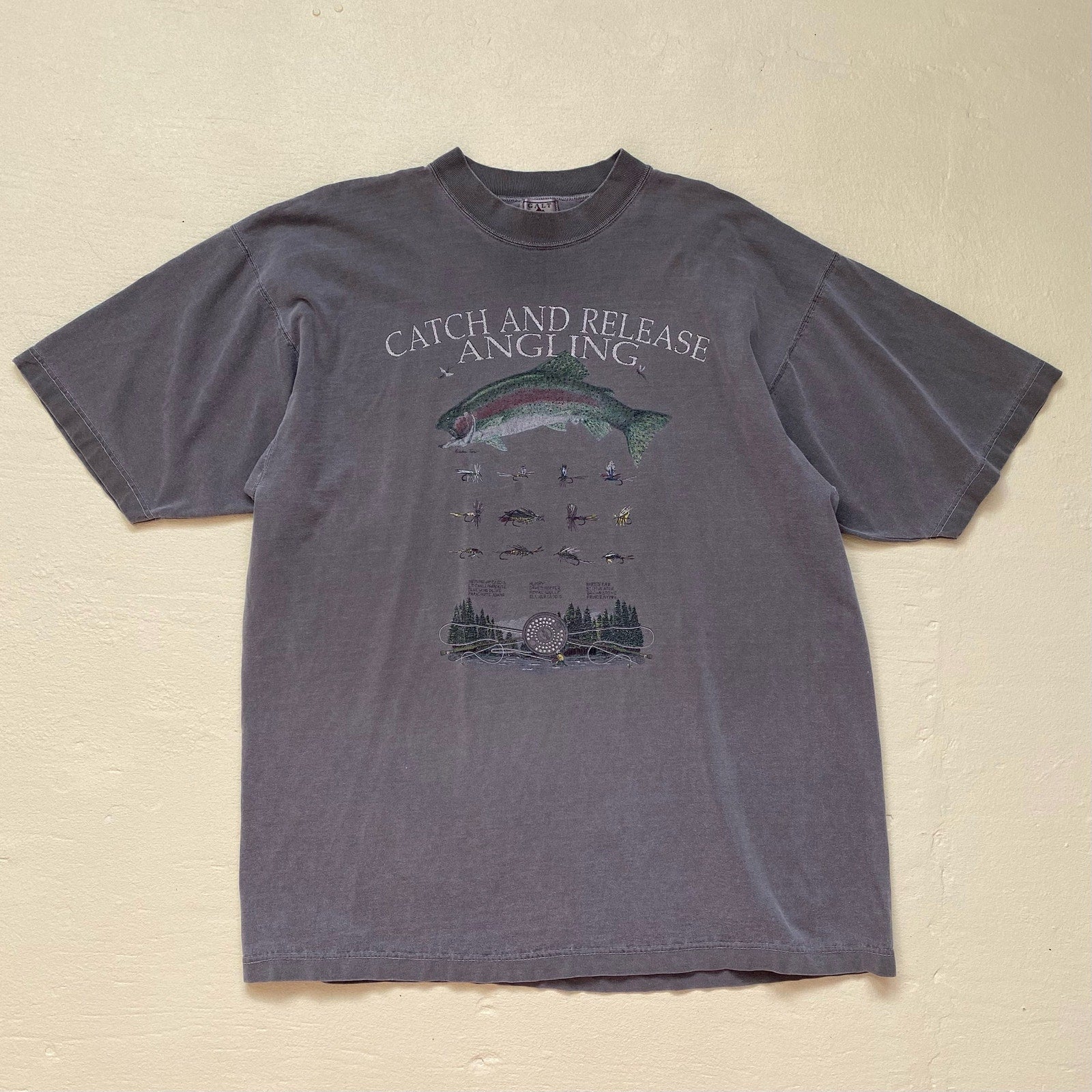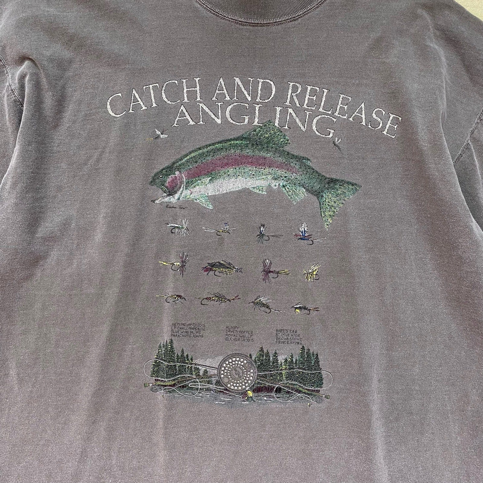 vintage 90s heavyweight cotton Catch & Release Angling fishing graphic short sleeve t-shirt. i believe this is an relaxed/oversized fit - please see measurements!