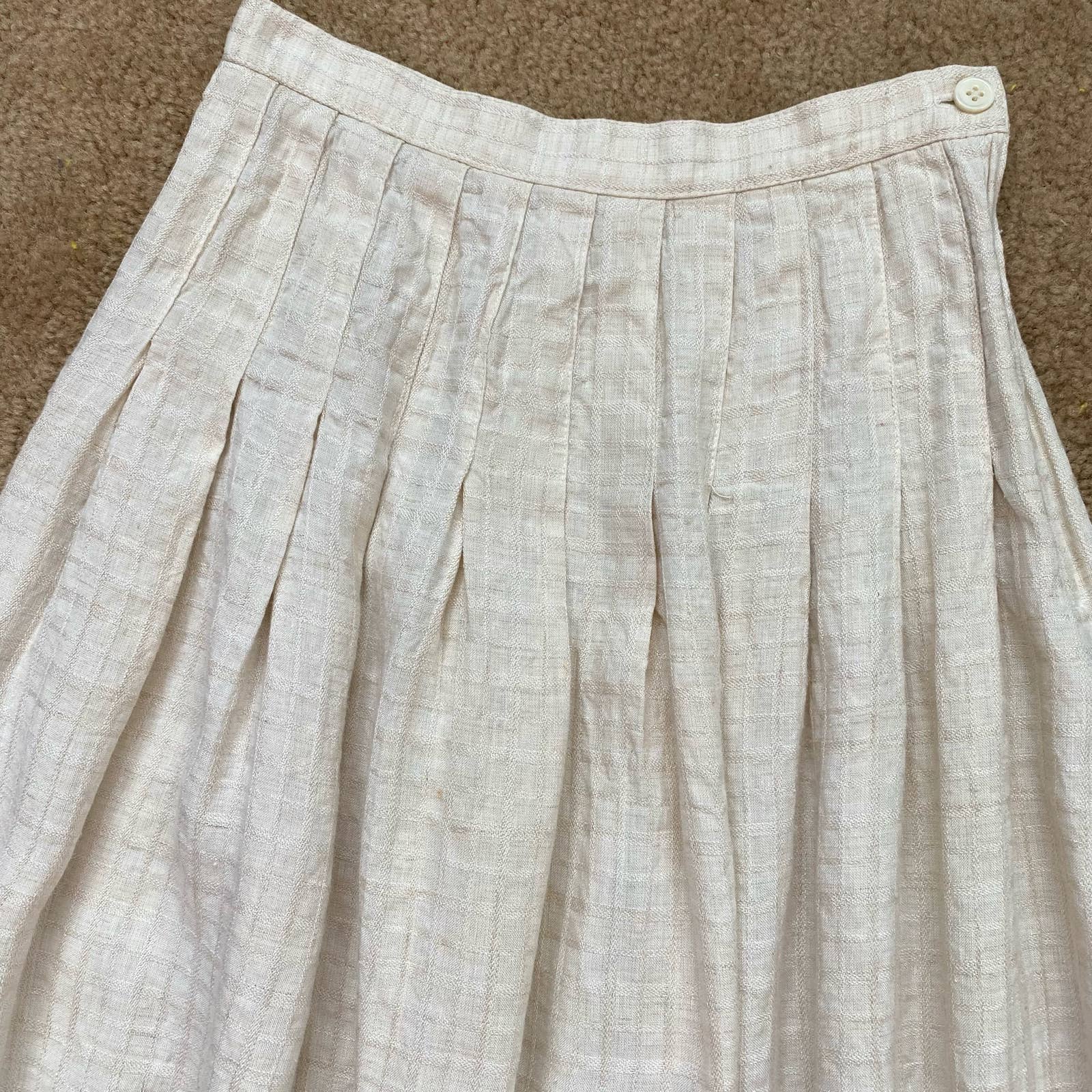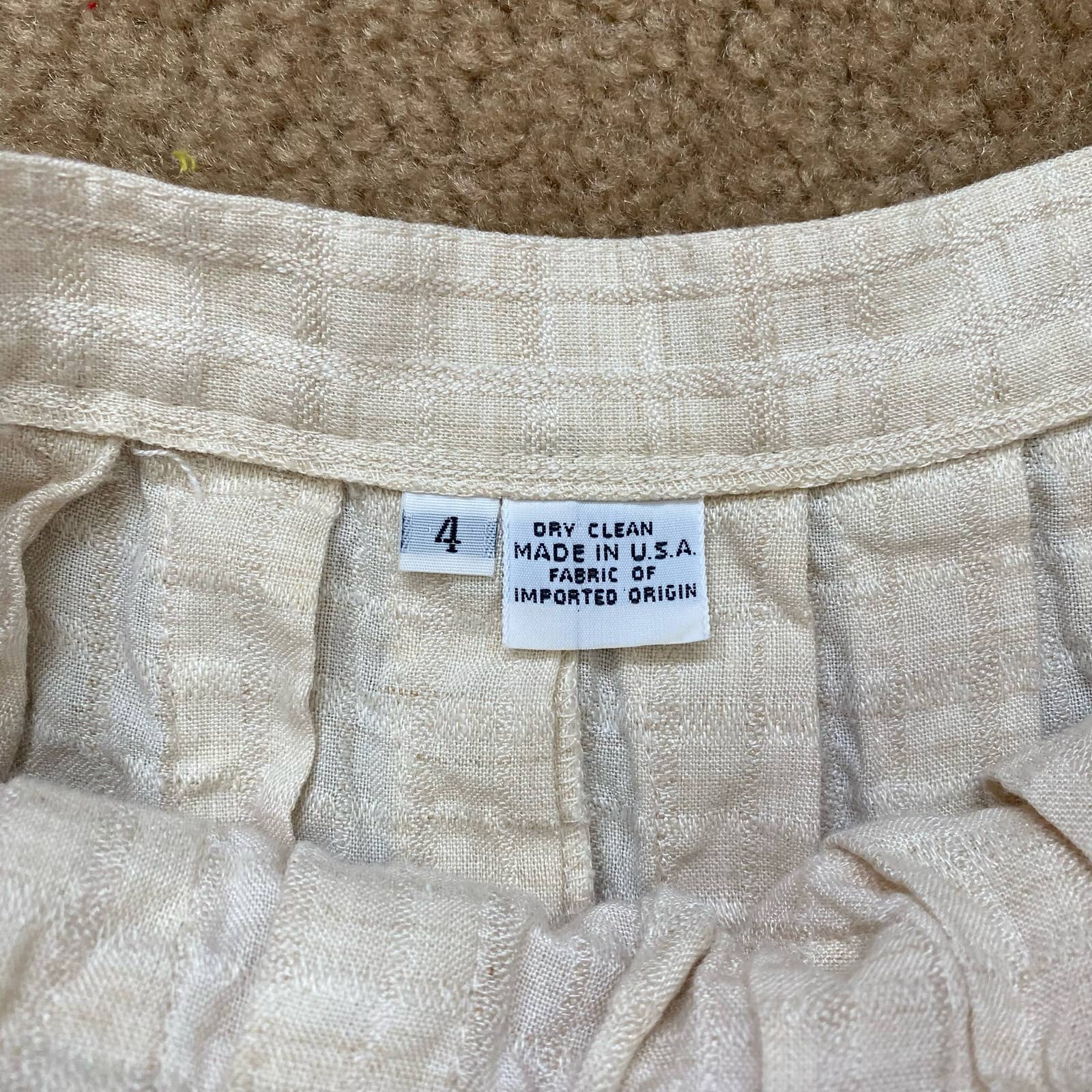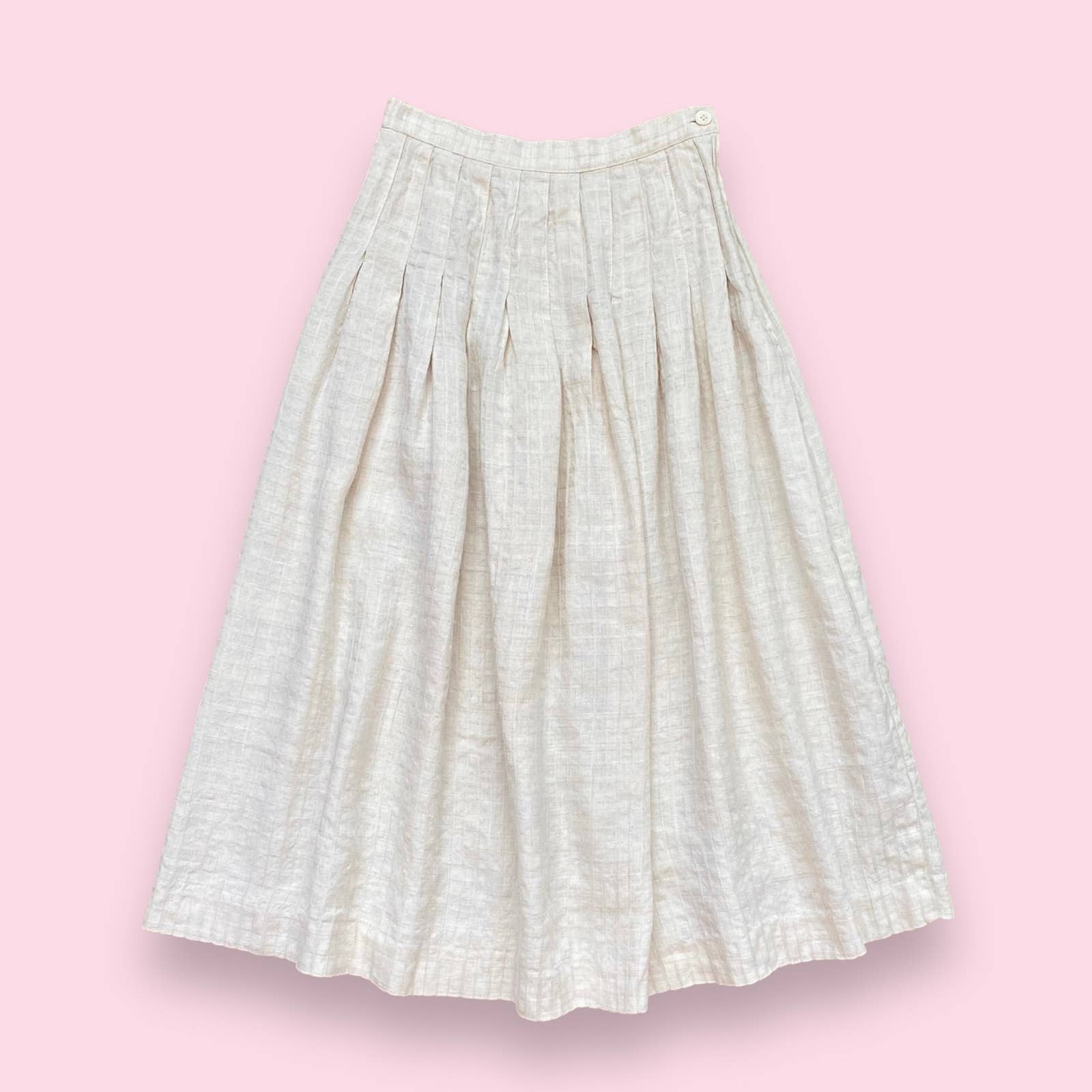 vintage cream white high waisted pleated linen skirt with side zip closure. flowy textured woven fabric. unlined, lightly see through. made in USA. dry clean. marked size 4, measures 24” waist, no stretch