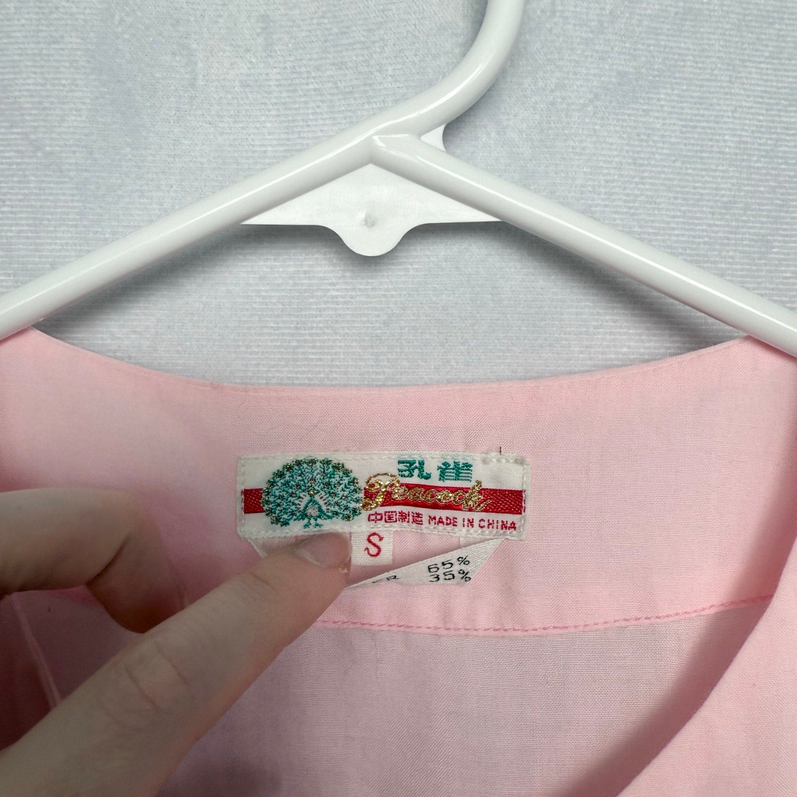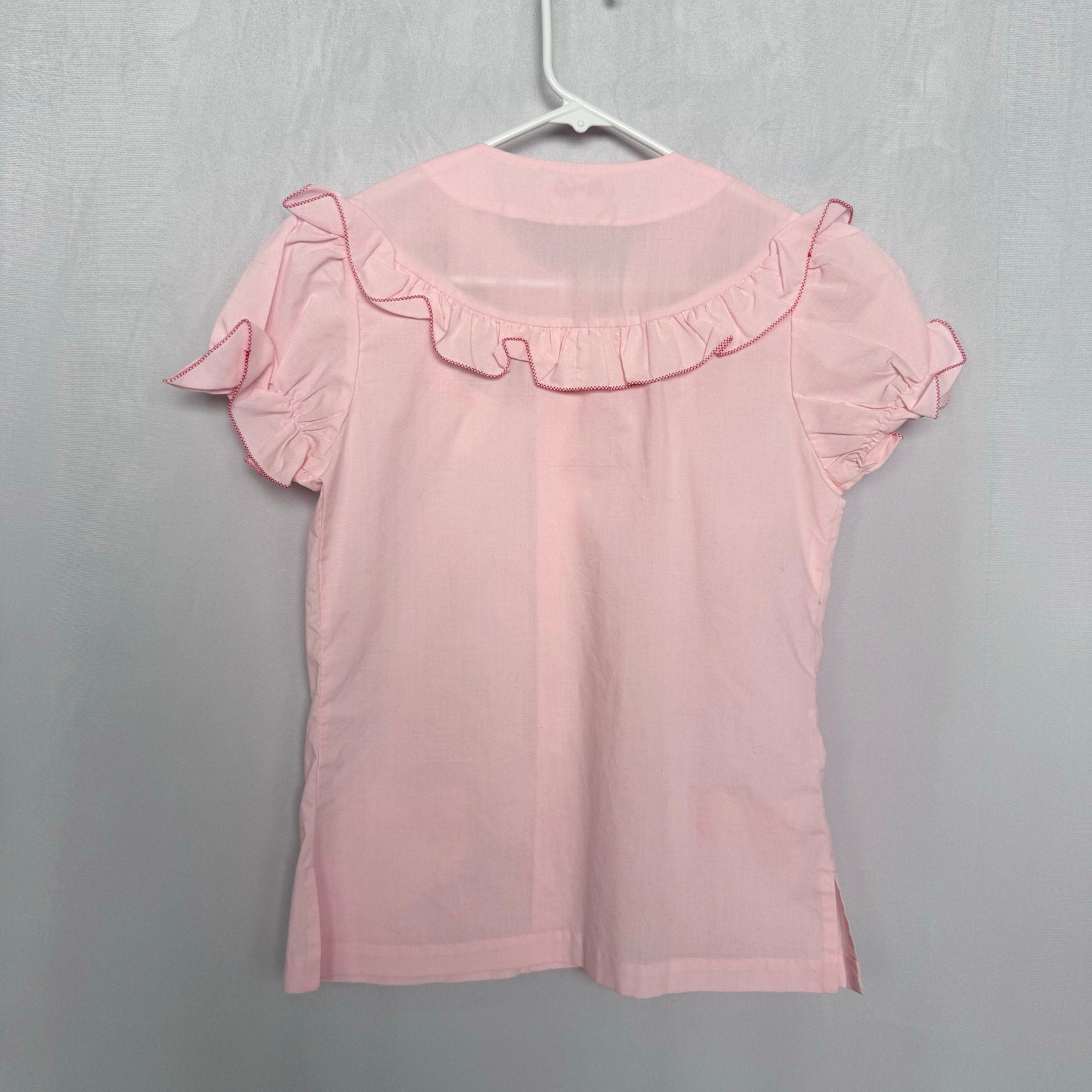 Vintage Pink Embroidered Ruffle Button Up Top, Size Small