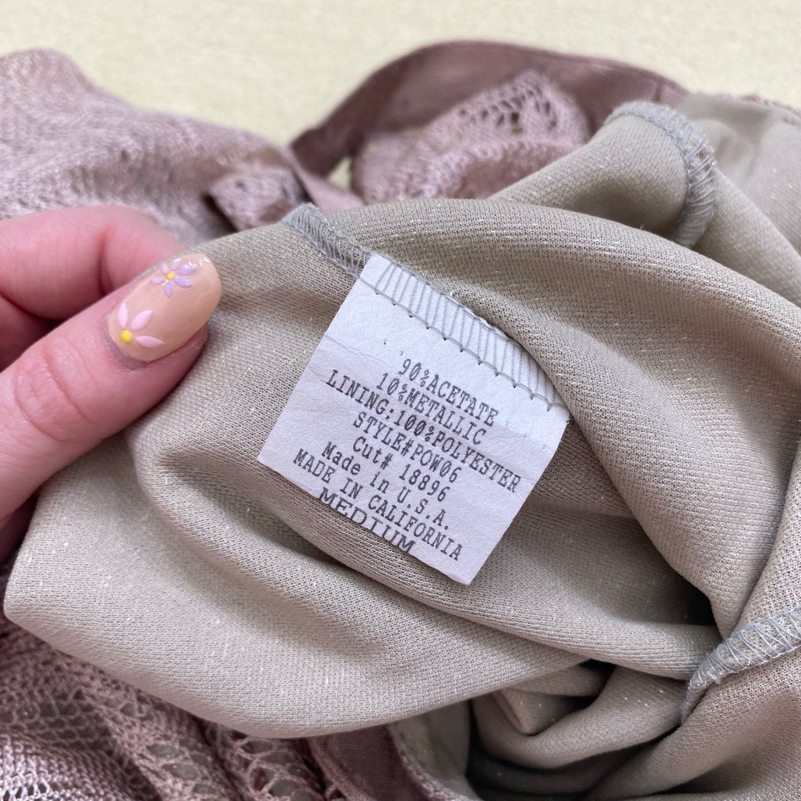 vintage 72k 90s champagne gold lace crochet shell fully lined ruffle hem fit & flare long maxi dress with shimmery inside lining