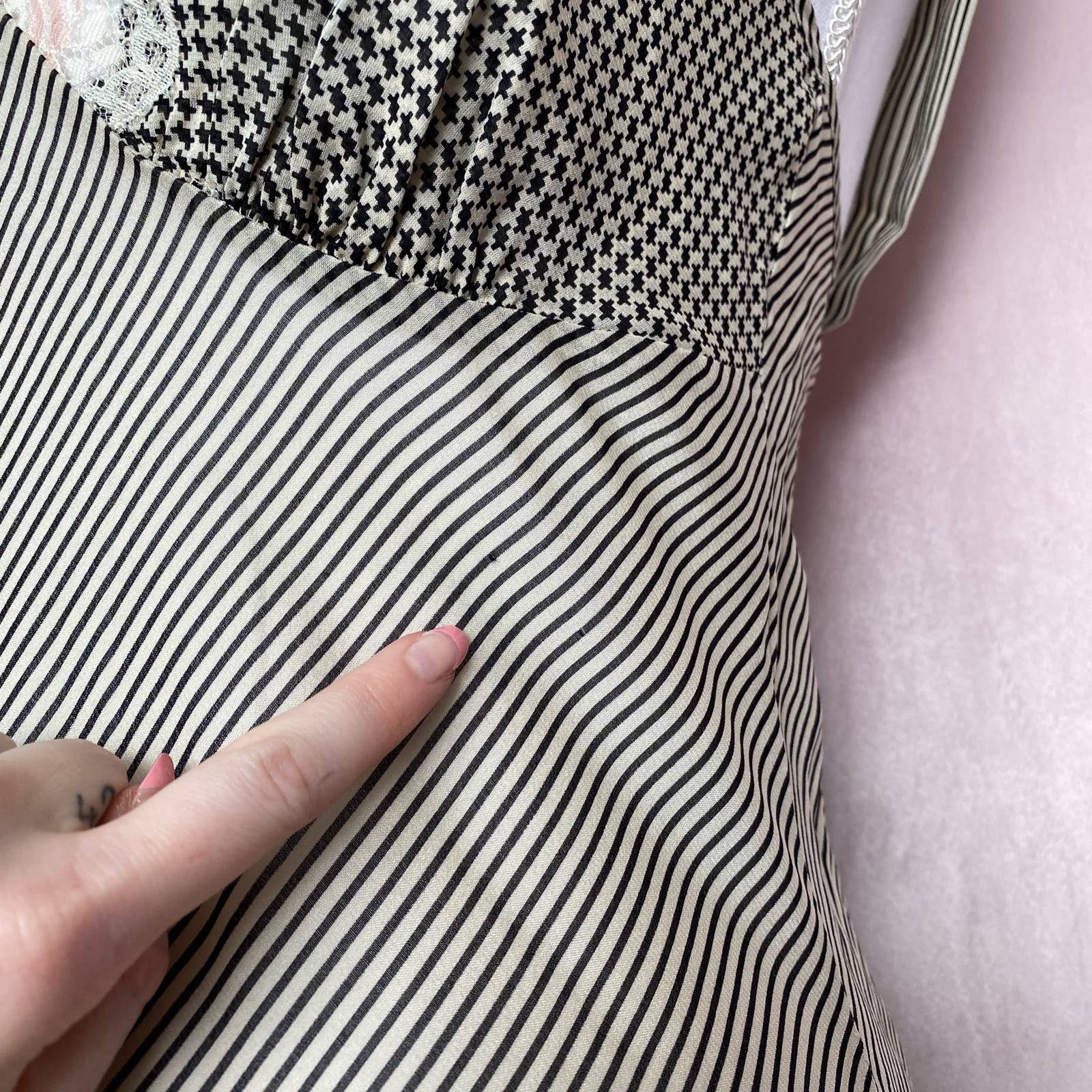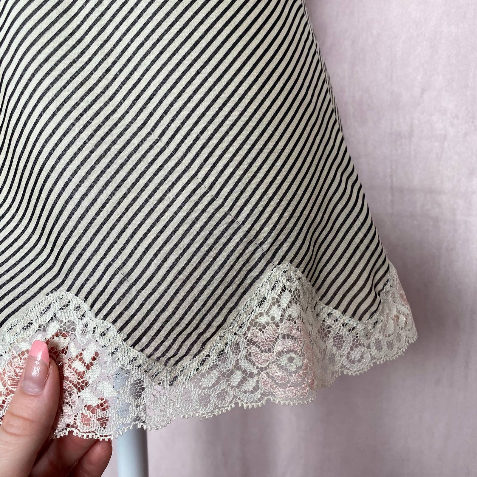 see-through lightweight see through thin silk camisole nighty top. striped print, cream pink lace trim