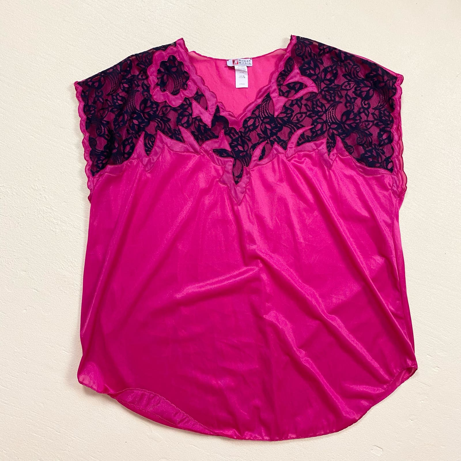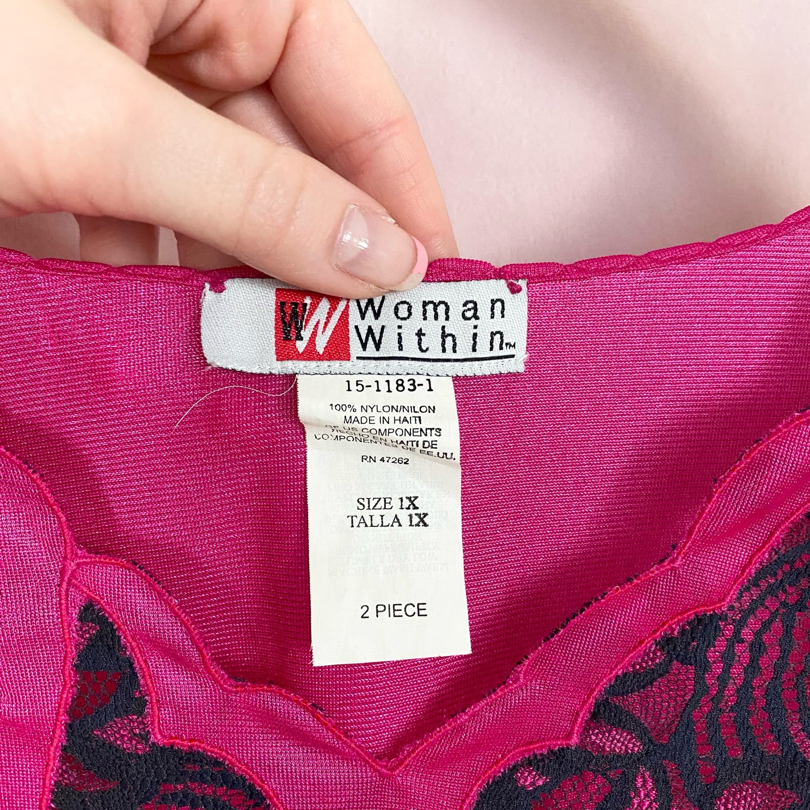 Vintage Woman Within Pink Satin Black Lace Top, Size 1X