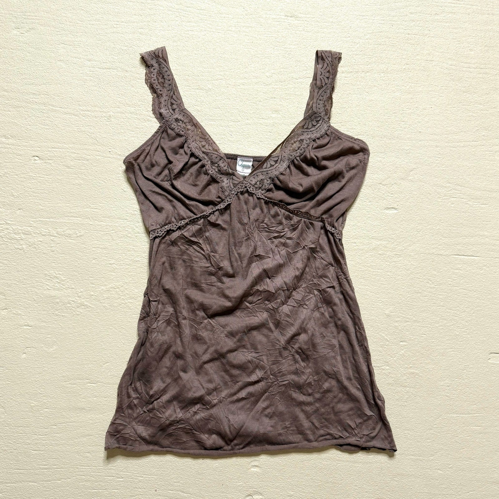 Y2K Aqua Lace Trim Brown Cami Tank Top, Size Medium