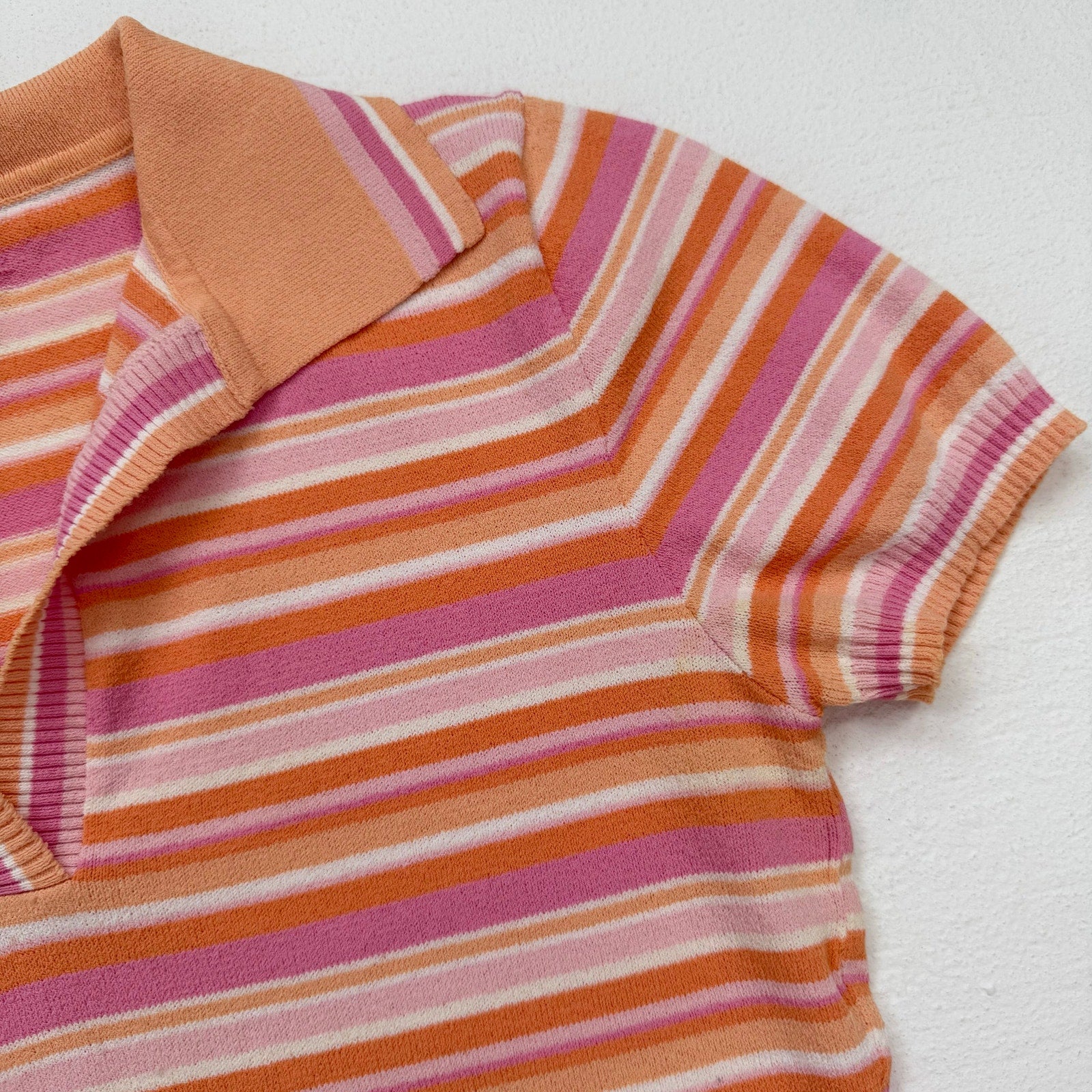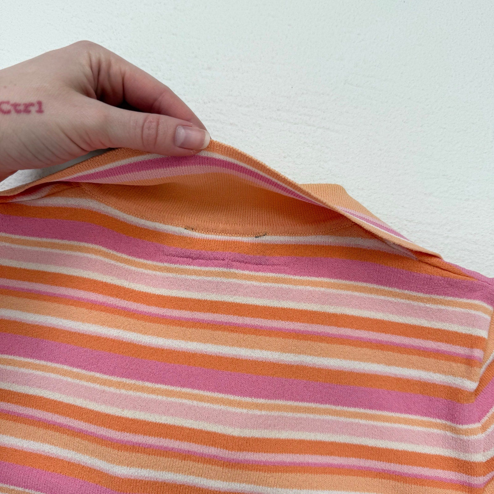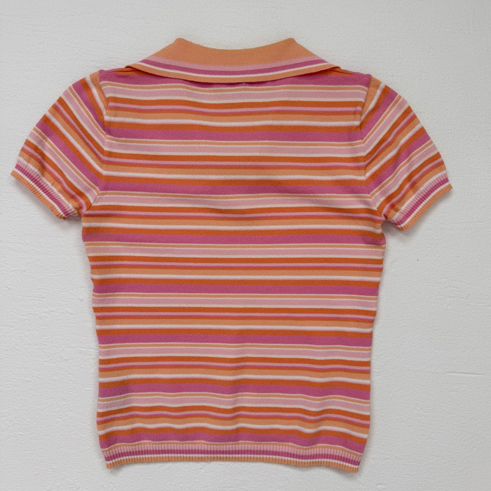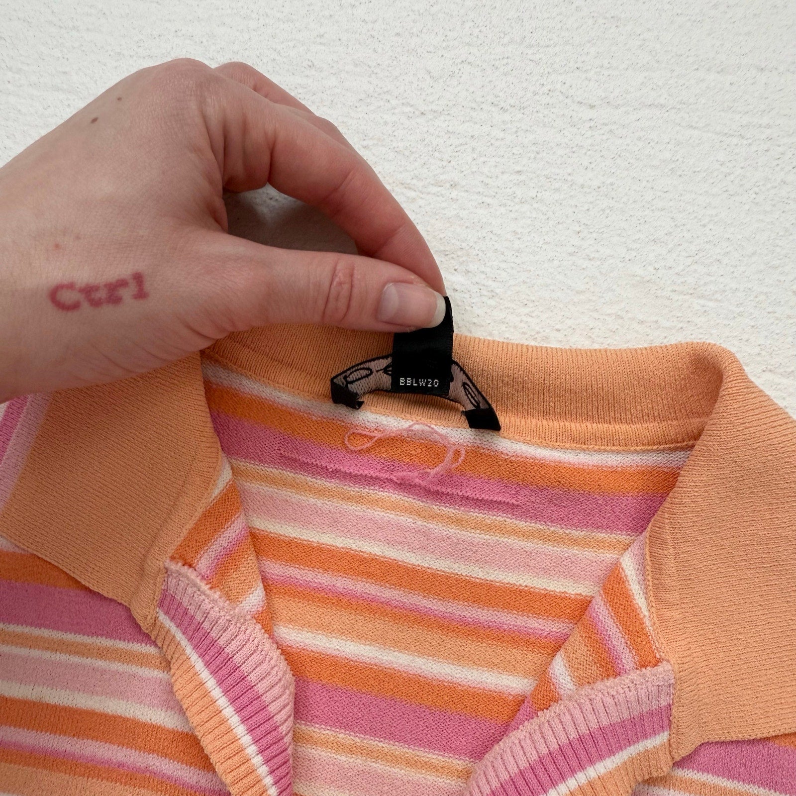 Y2K Bebe Pink Orange Ribbed Stripe Polo Top, Size Medium
