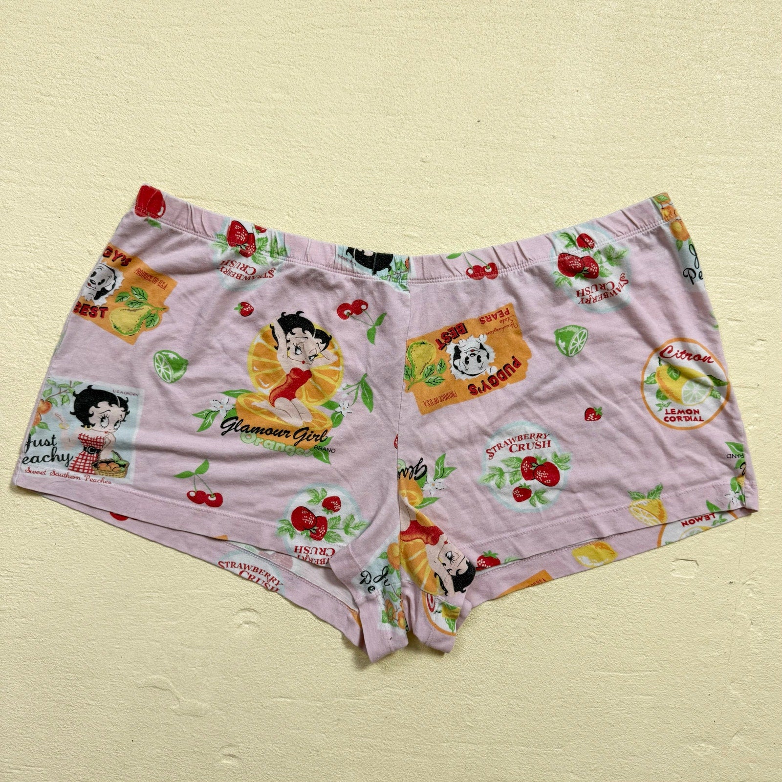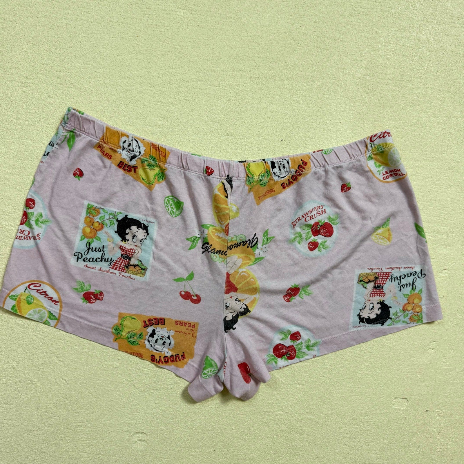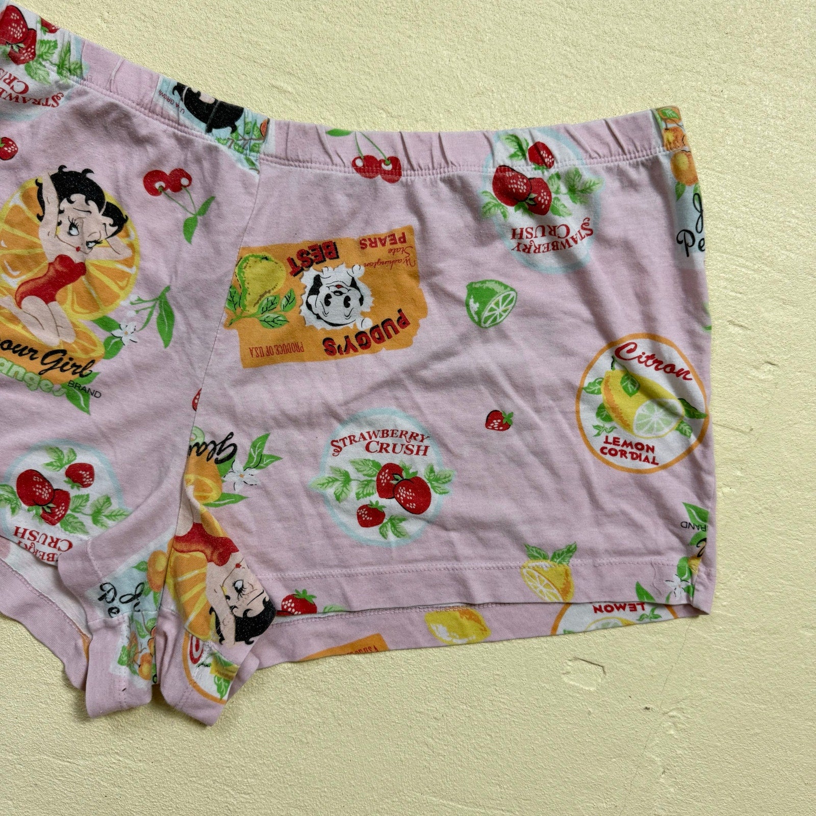 vintage y2k betty boop strawberry fruit retro print pajama shorts. soft thin lightweight stretchy fabric