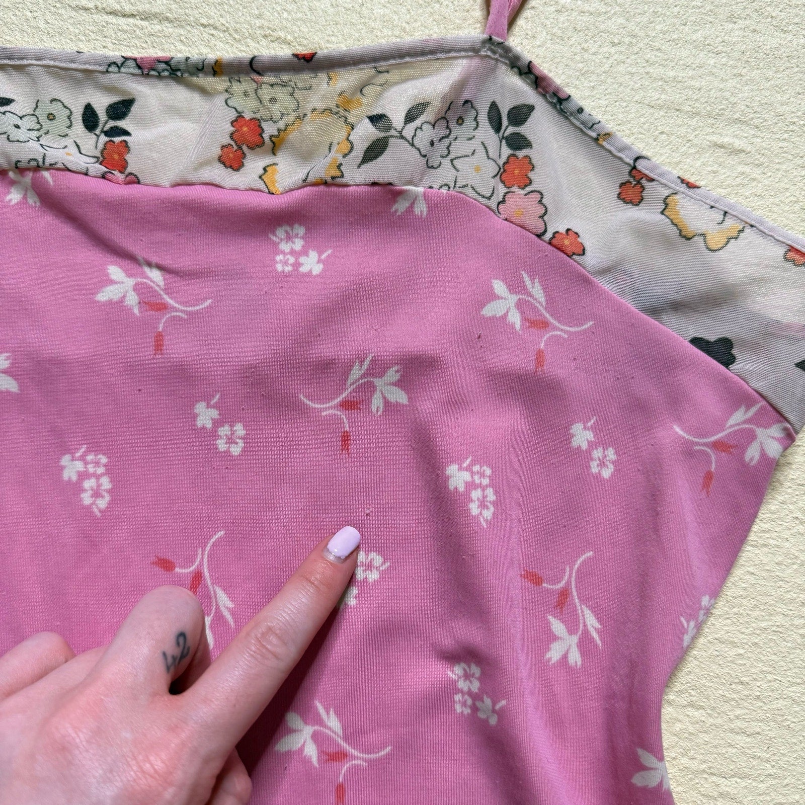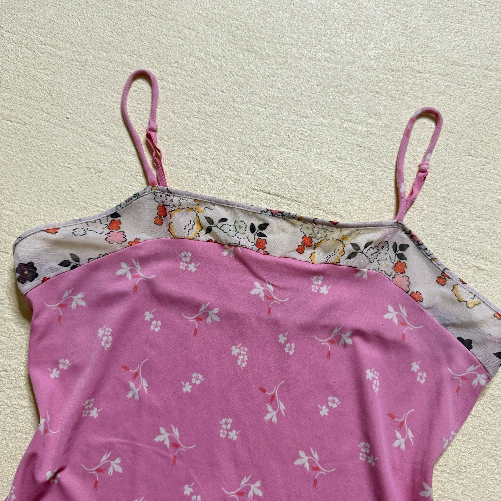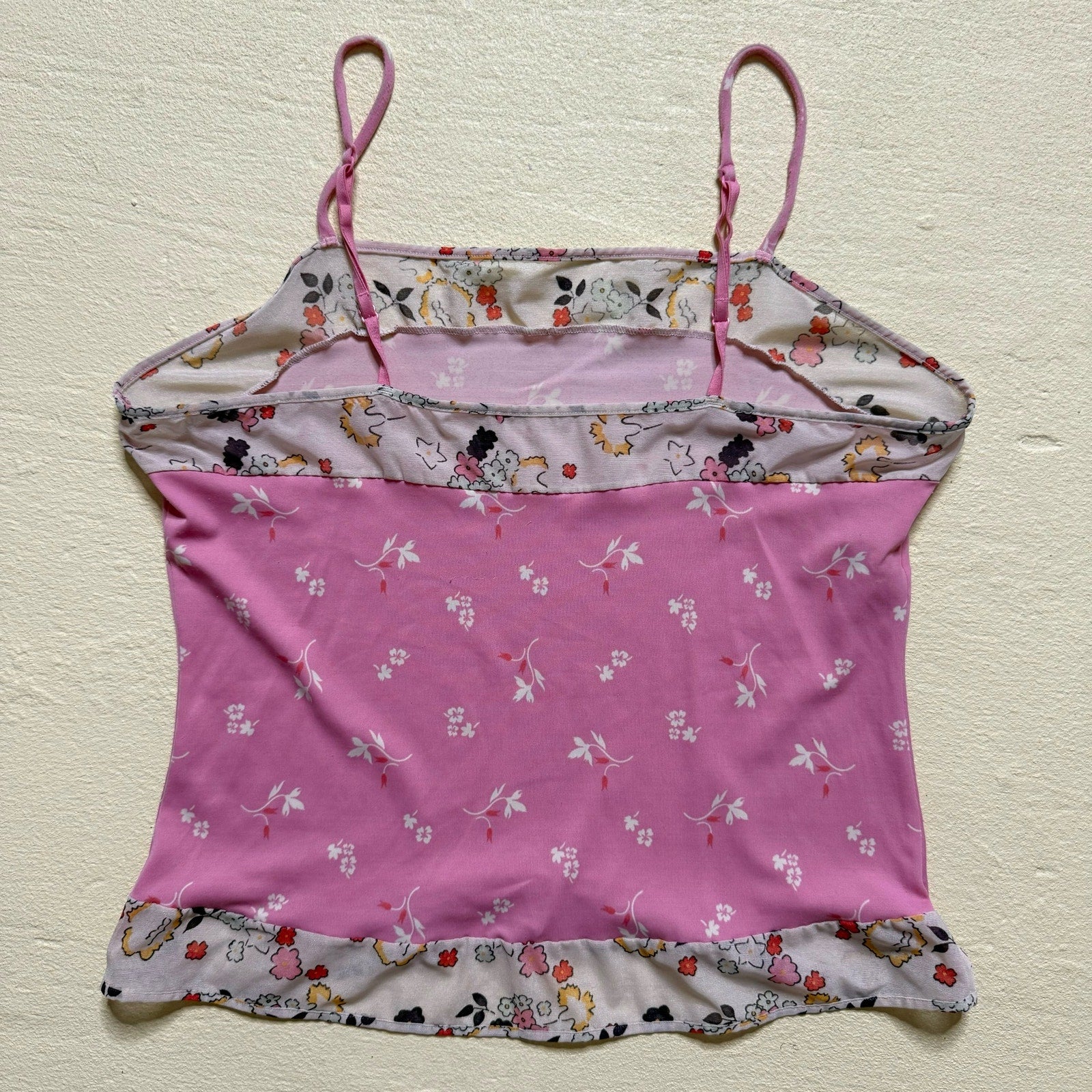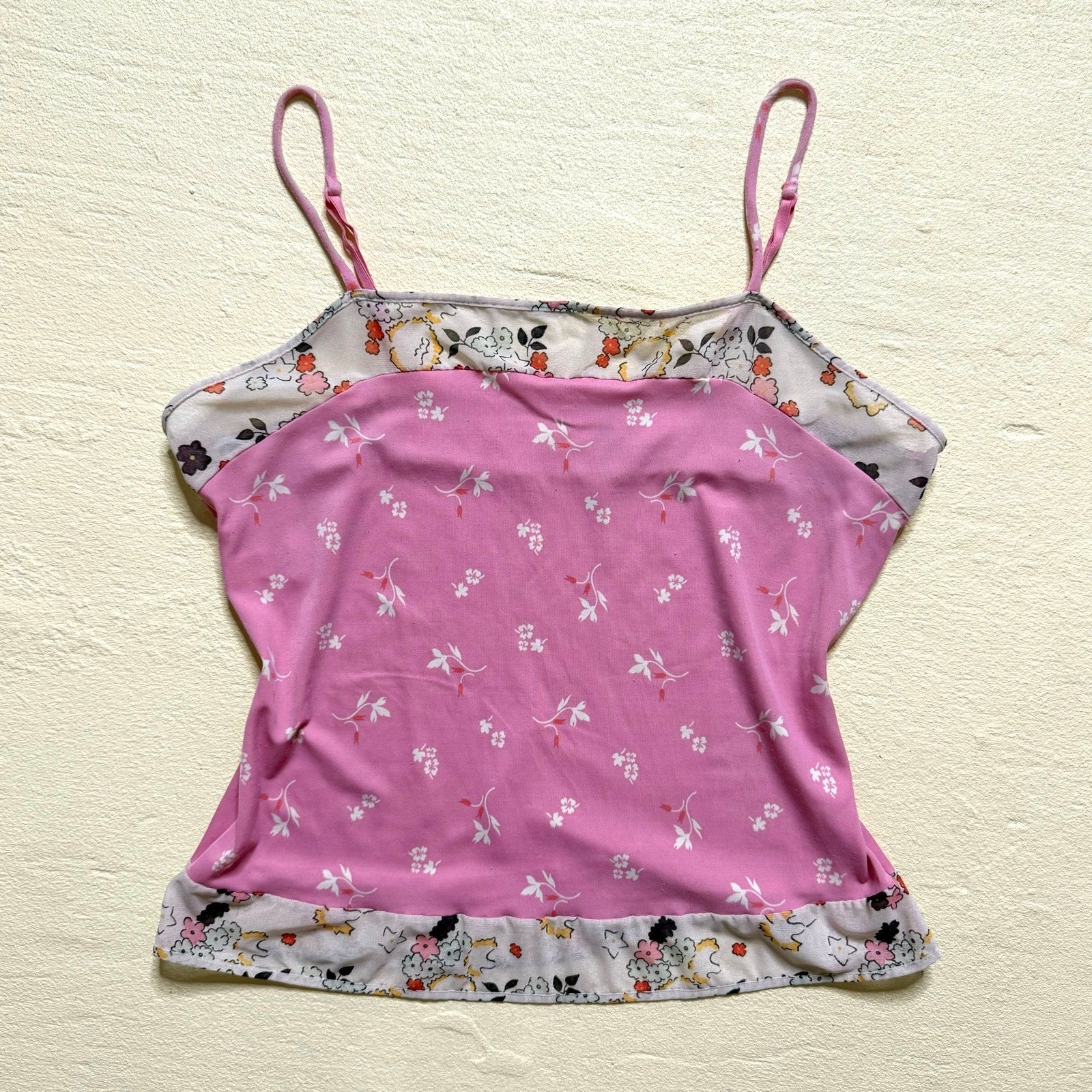vintage y2k gap floral mesh trim tank top. adjustable spaghetti straps. super stretchy lightweight fabric