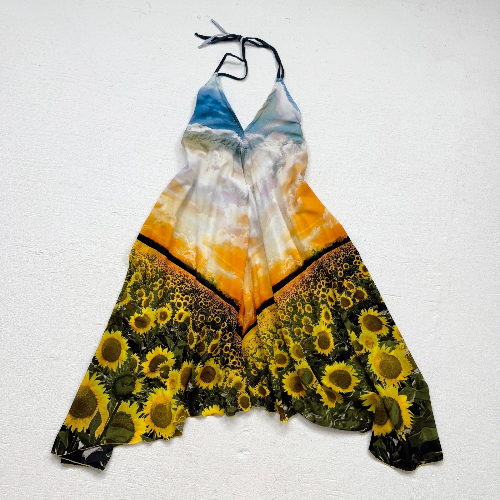Y2K Les Tout Petits Sunflower Handkerchief Halter Dress, Fits XS