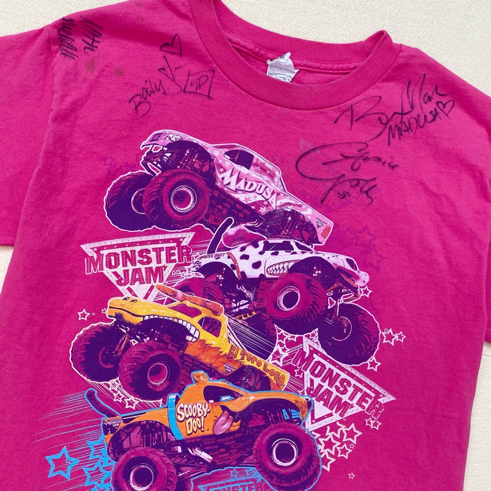 y2k Alstyle monster truck monster jam signed graphic t-shirt. marked youth girls size L. fits size XS-small women’s relaxed fit. soft knit stretchy cotton fabric
