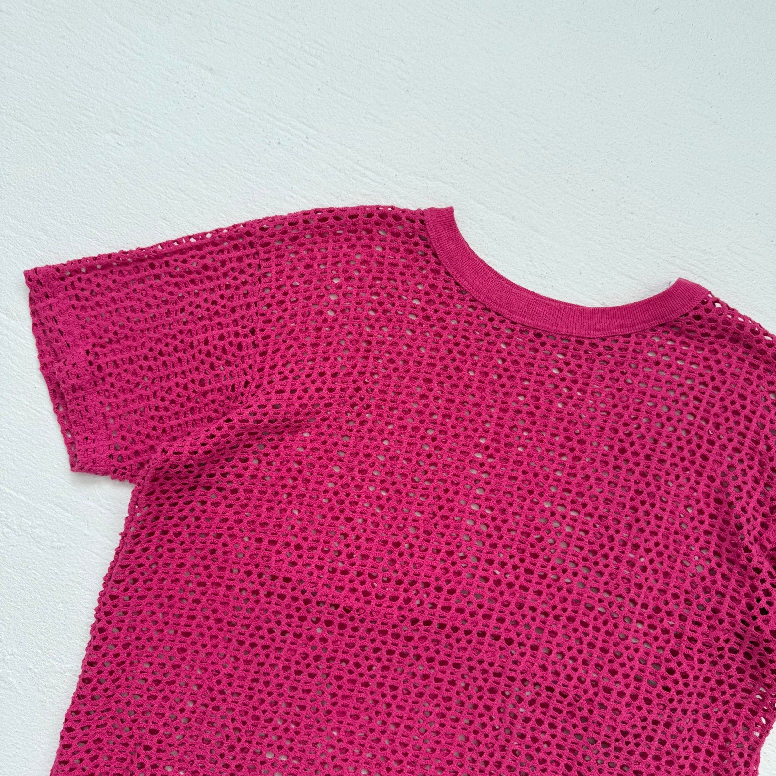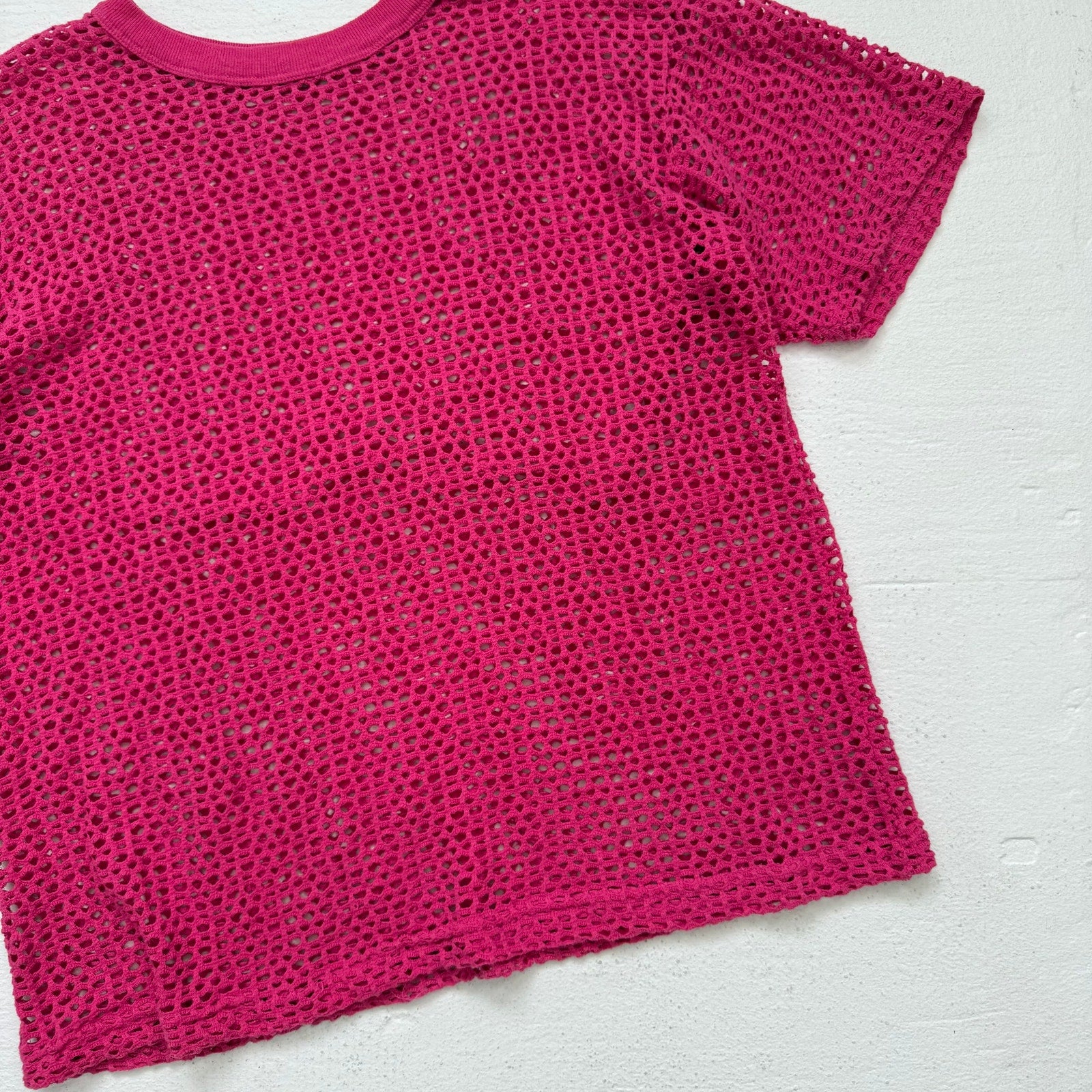 Lovely magenta pink open crochet knit top, perfect for adding a pop of color to your wardrobe! This top fits up to size XL with a relaxed and oversized fit. Please refer to the measurements below to ensure the perfect fit.