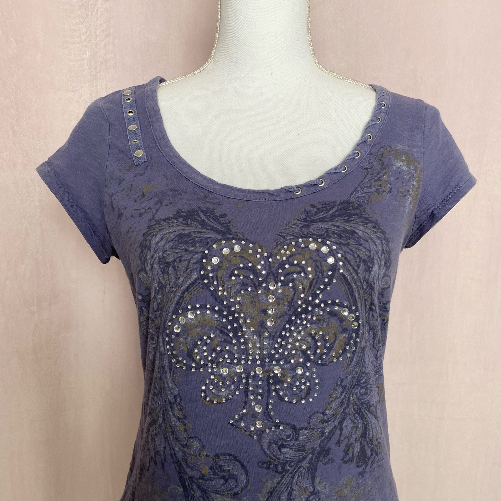 Y2K RXB Rhinestone Fleur De Lis Short Sleeve Top, Size Medium