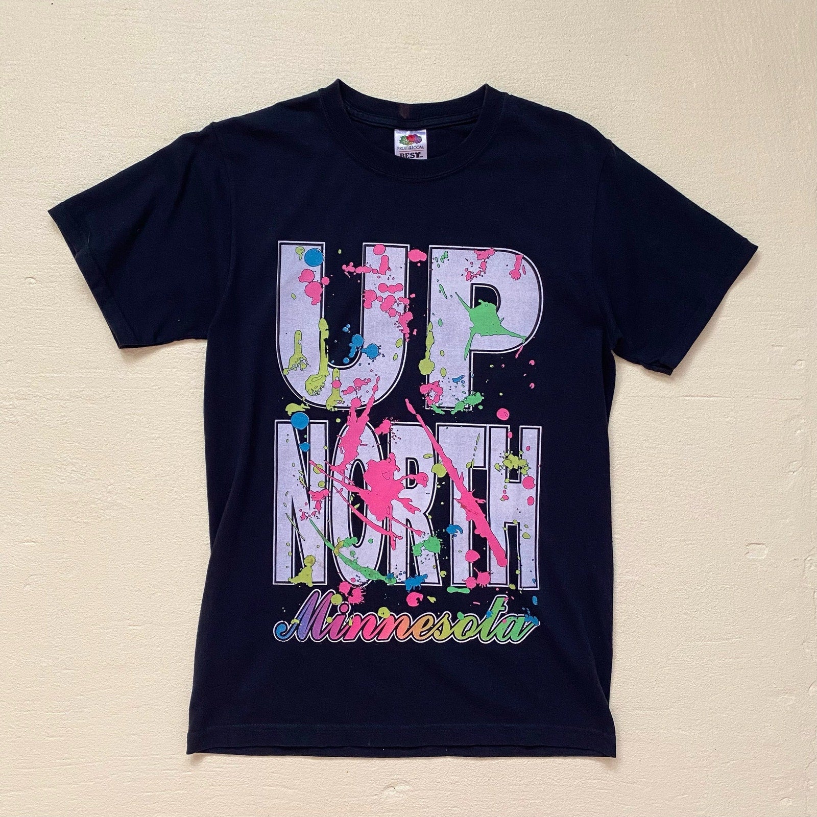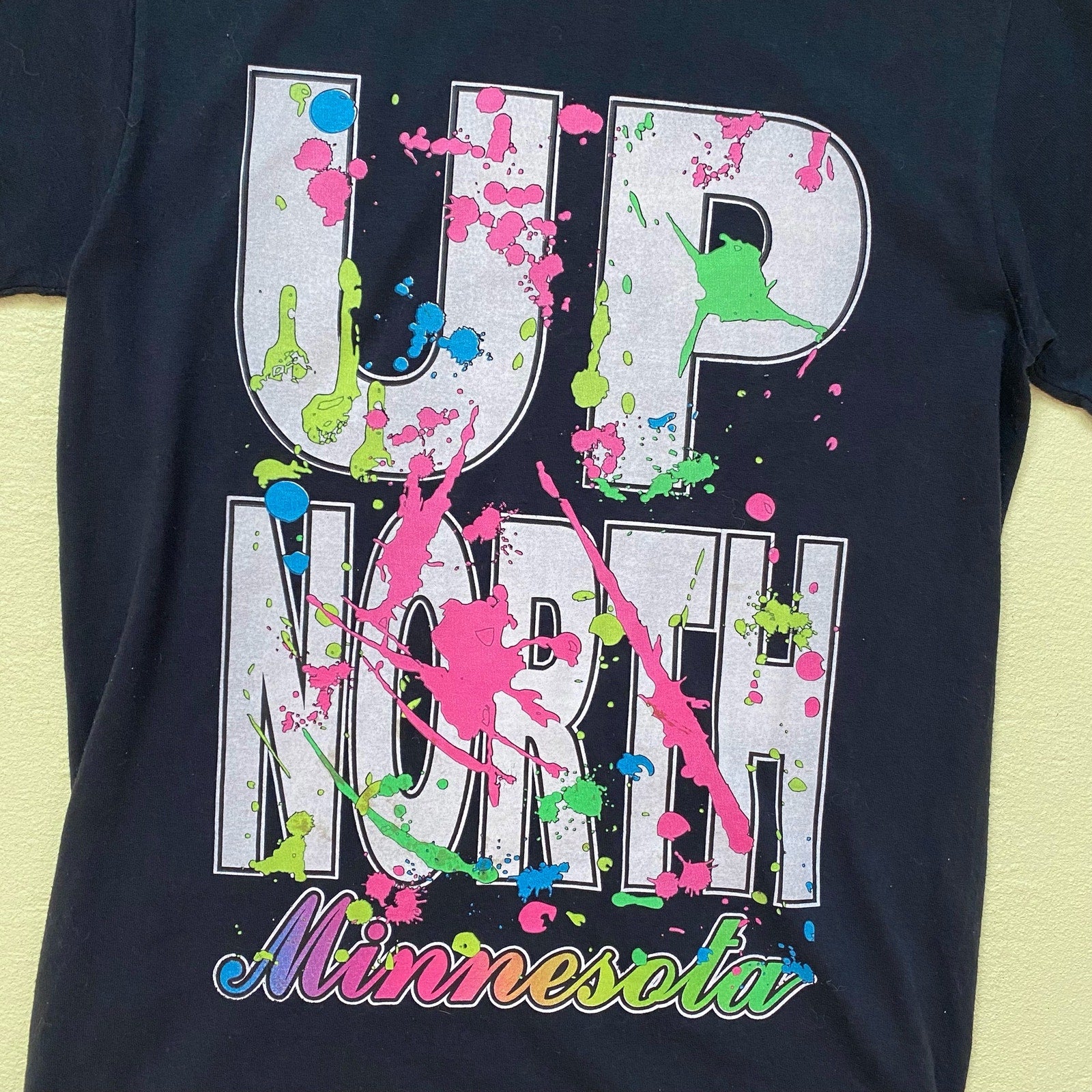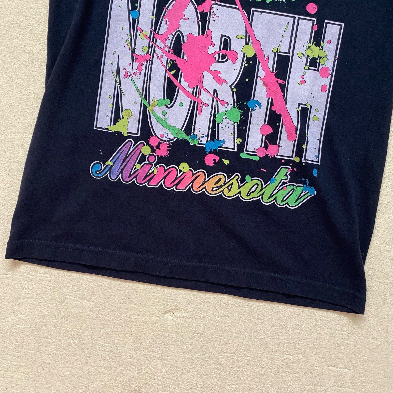 Y2K Up North Minnesota Splatter Paint Graphic Tee, Size Small