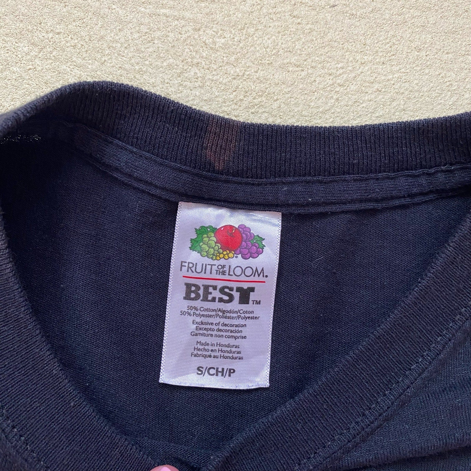 vintage 2000s Fruit of the Loom up north MN multicolor splatter paint graphic black short sleeve t-shirt. soft cotton blend stretchy fabric