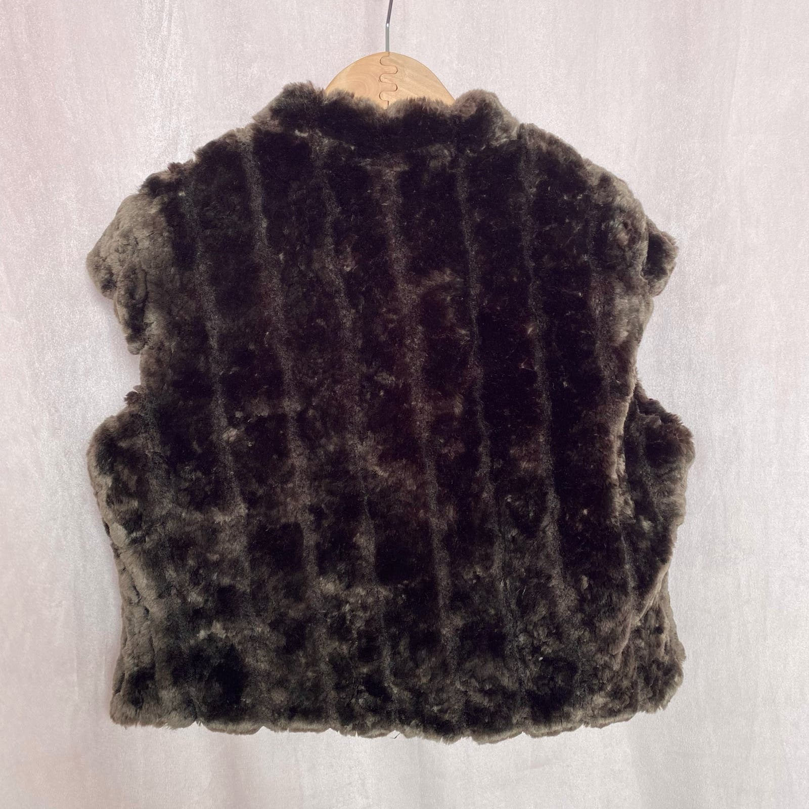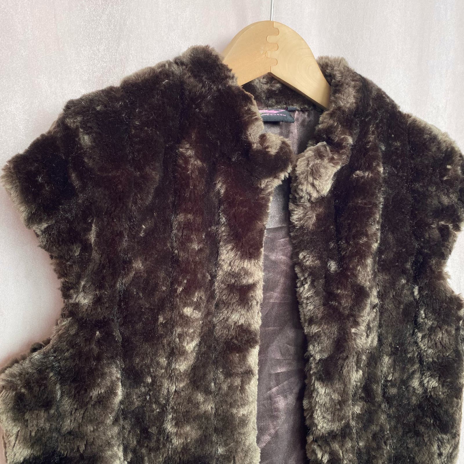 vintage 2000s faux fur vegan dark brown vest with hook eye front closure. super soft. lined